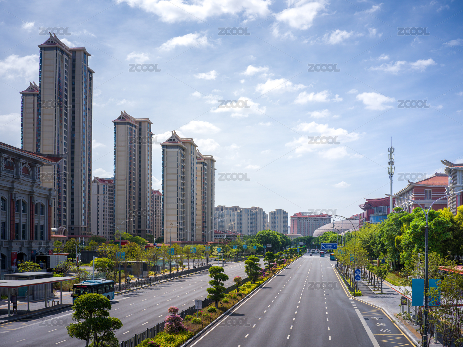 蓝天白云映衬下的城市建筑让人赏心悦目