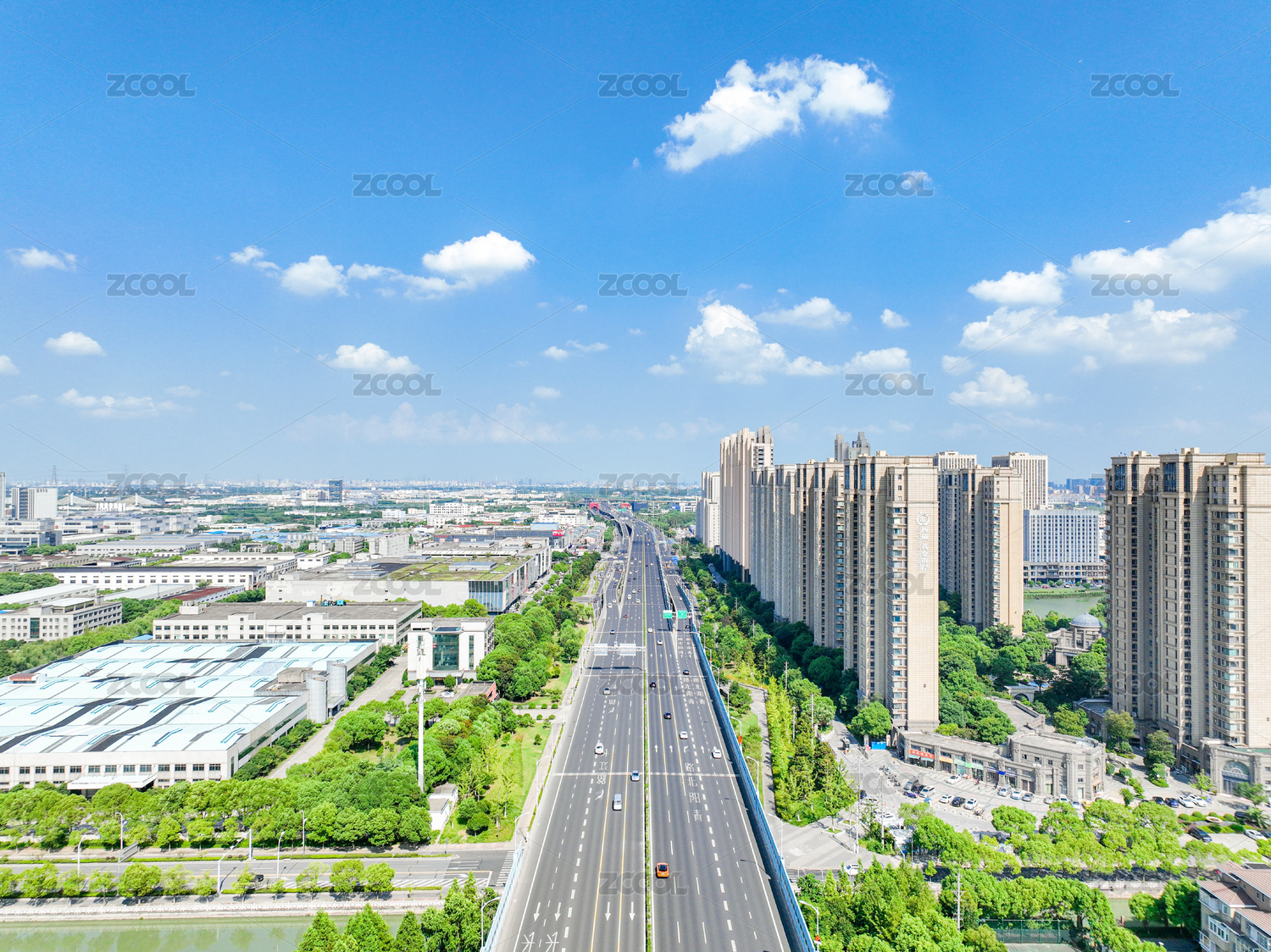 航拍,昆山,昆山航拍,城市全景,蓝天白云,高层建筑,城市道路,河道桥梁,住宅小区,城市绿化
