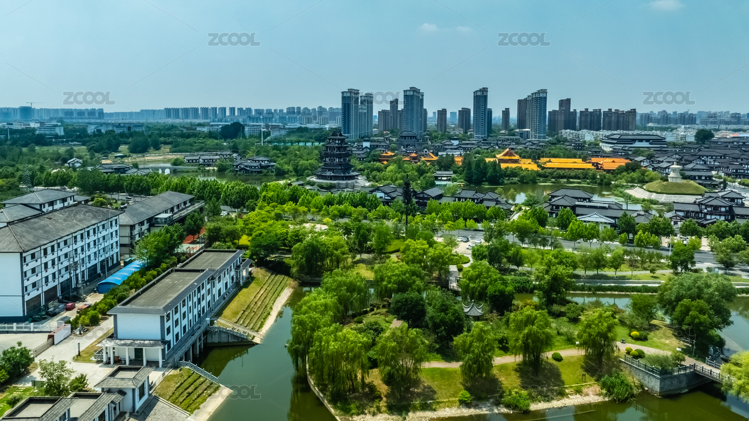 夏季白天航拍苏州张家港河南禅寺佛教建筑
