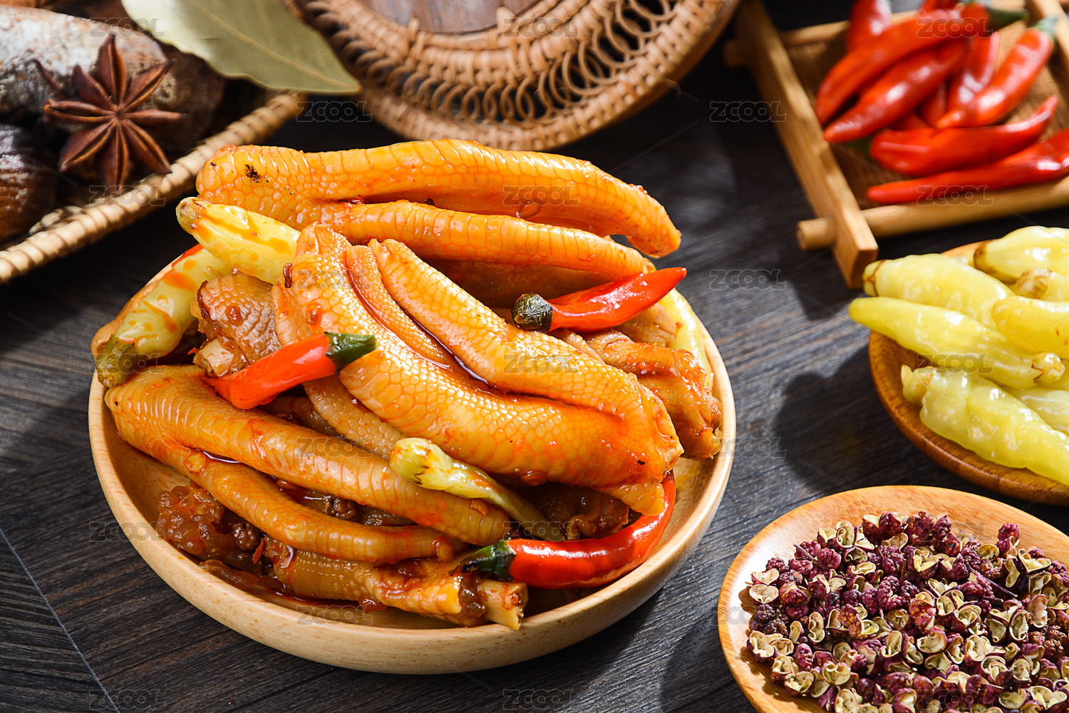 盘子里的重庆卤菜老火锅菜品卤鸡爪