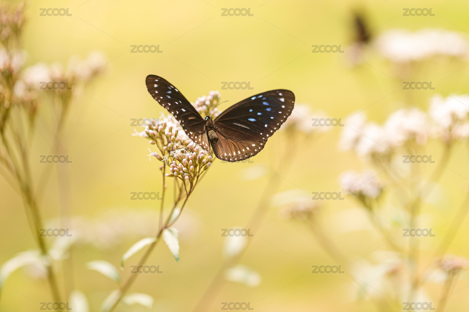 春天和夏天,蝴蝶在花丛中采花粉的绿色背景