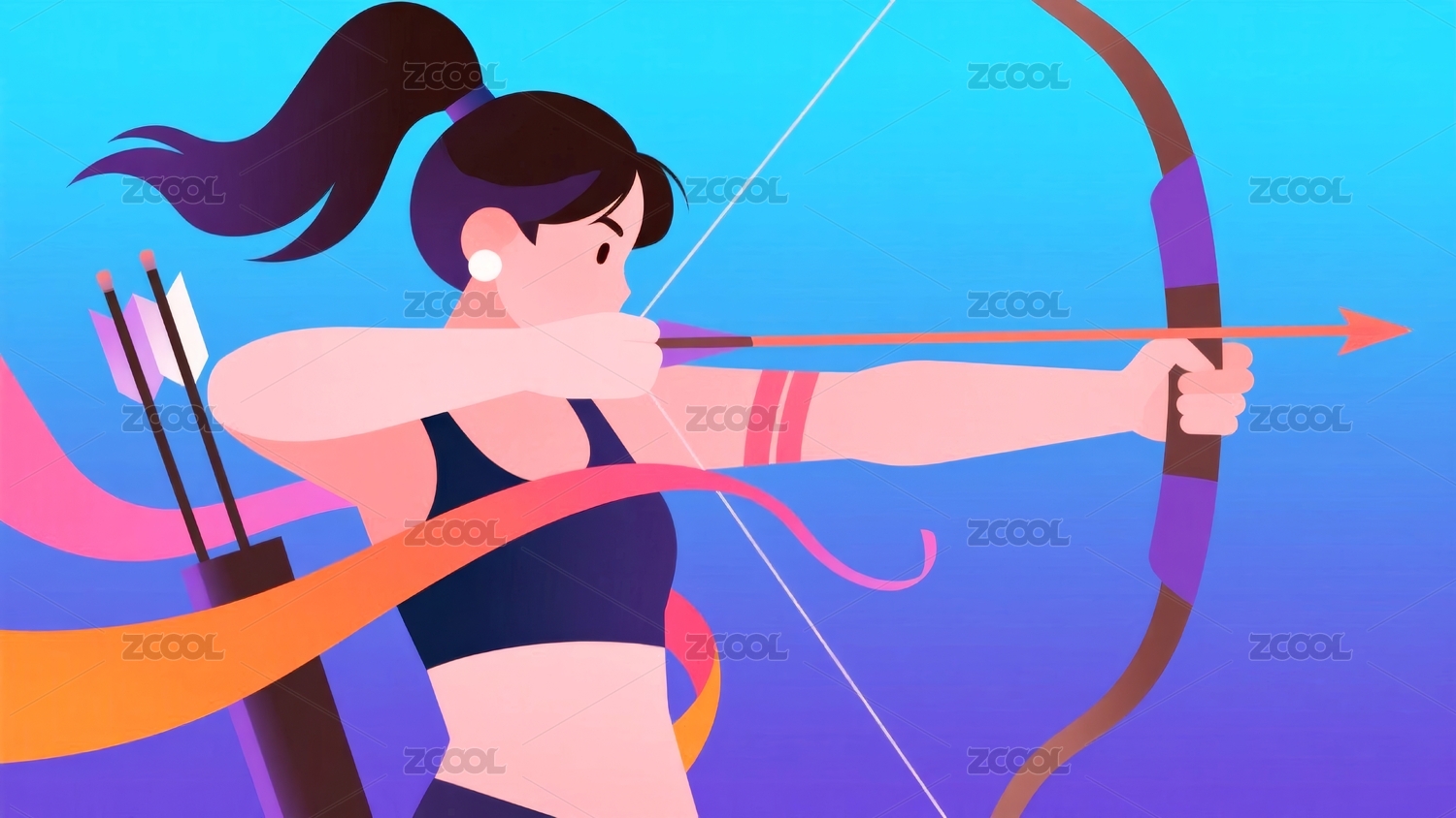 空中射箭的女性与飘动丝带