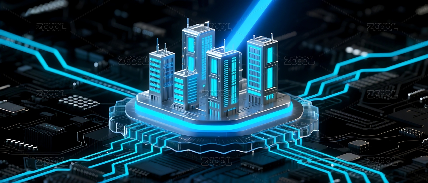 芯片金融科技赛博朋克人工智能三维渲染电路