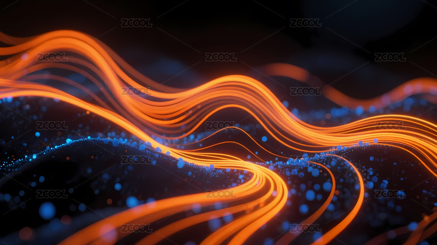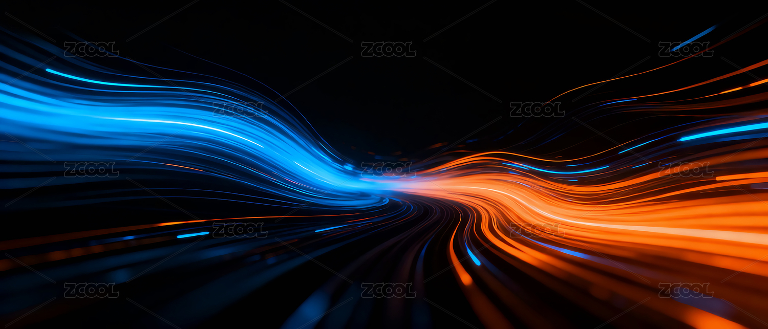 背景,蓝色,橙色,动态,深色,视觉,科技,光带,速度,流动