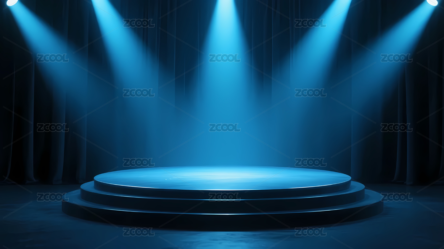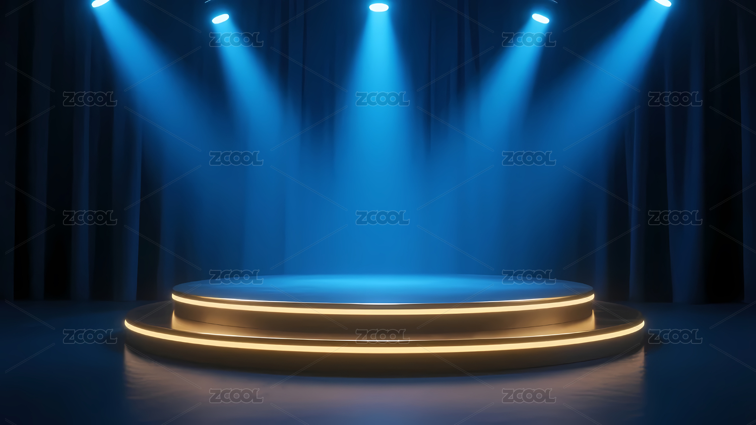背景,发光,深蓝色,圆形,舞台,聚光灯,庄重,圆环,两层,幕布