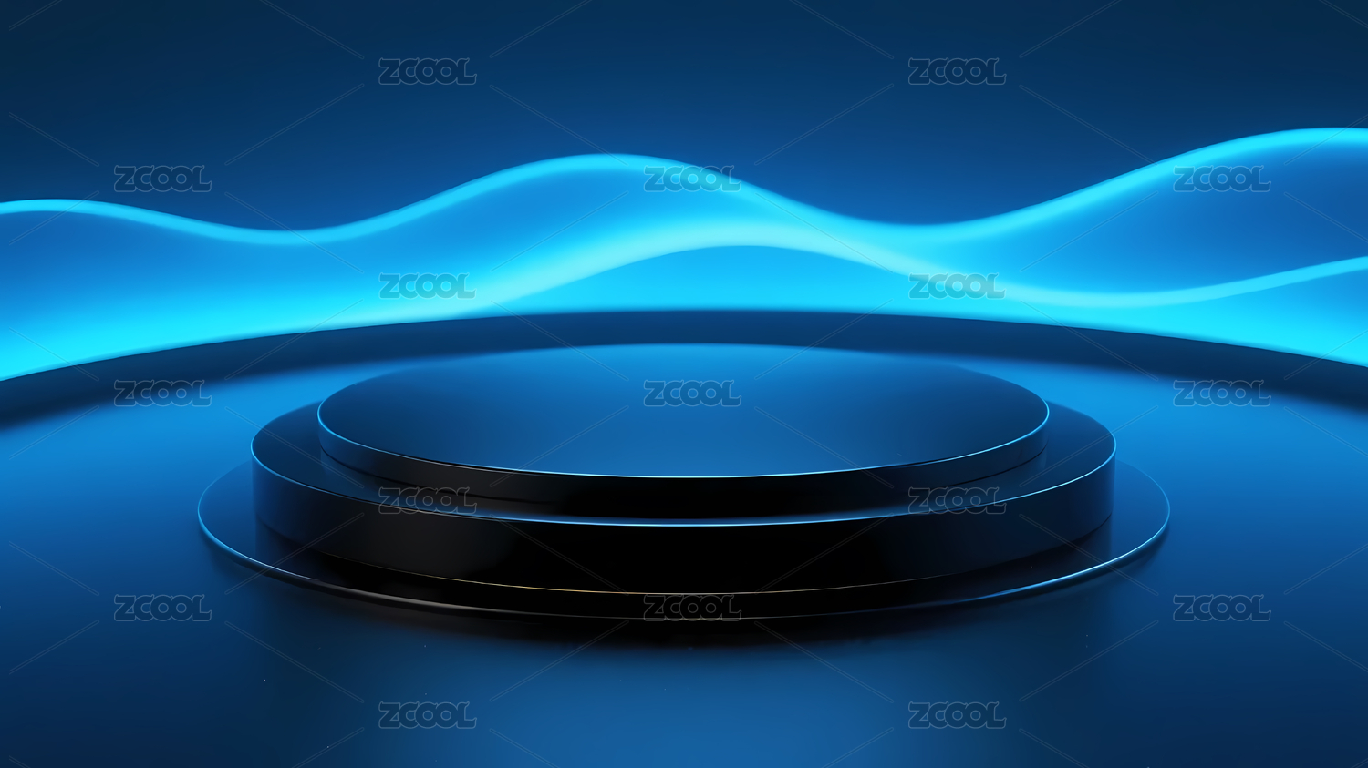 黑色平台与蓝光波浪背景