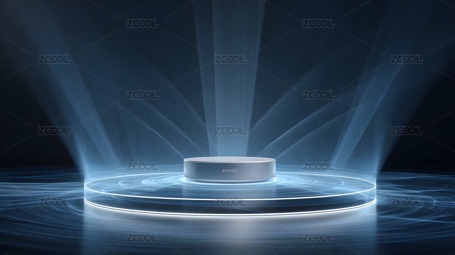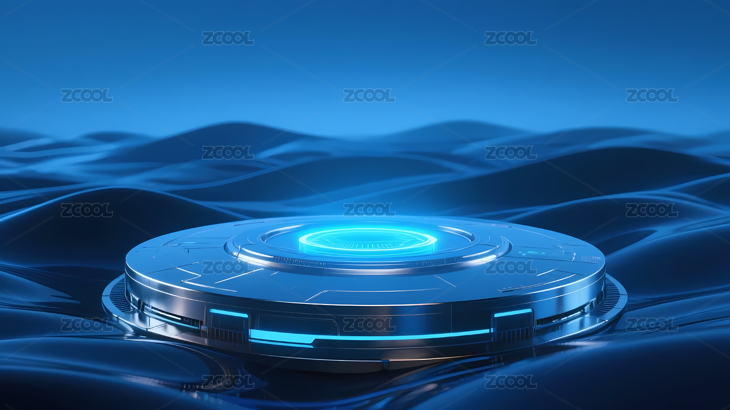 黑色圆形平台与蓝色波纹背景