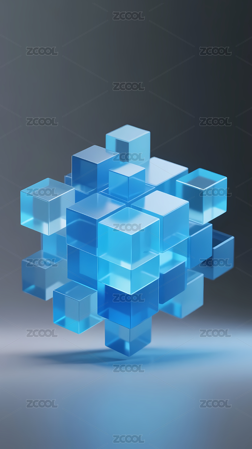 未来科技感蓝色水晶透明玻璃几何立方体背景