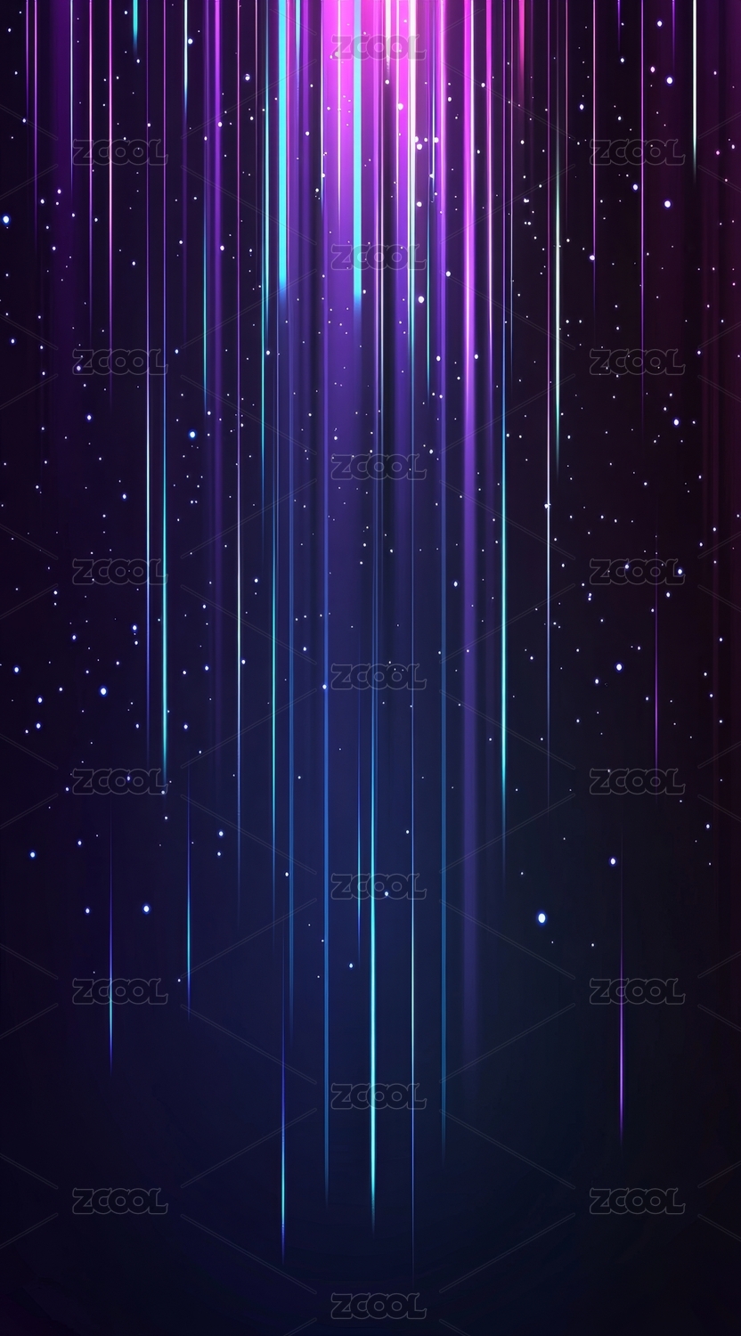 紫色光束与星空粒子背景