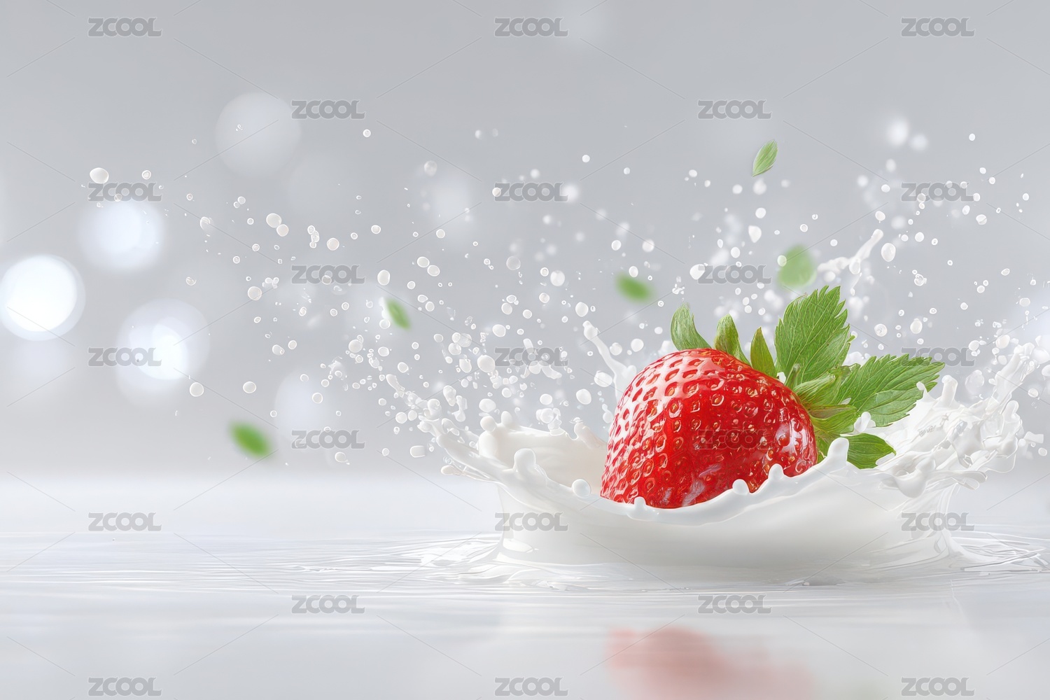 绿叶,白色,清新,草莓,牛奶,飞溅,果实,美味