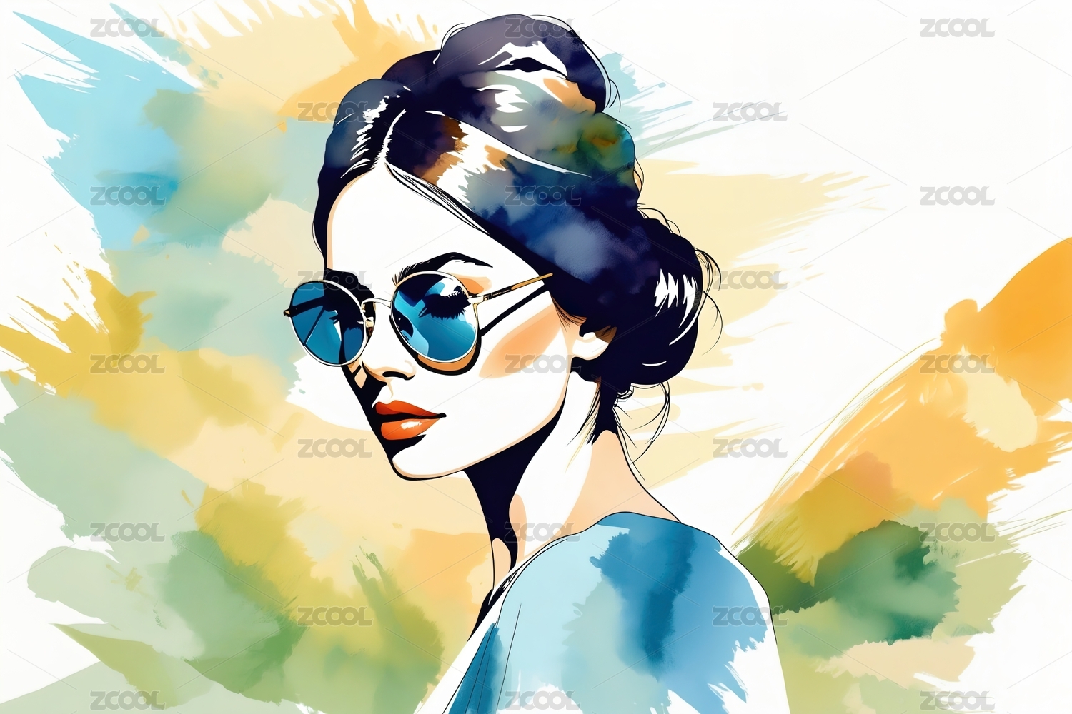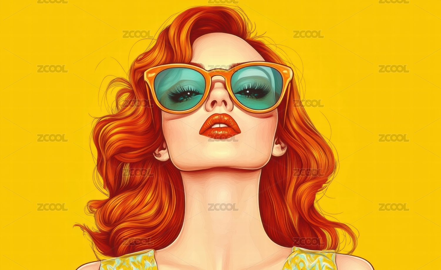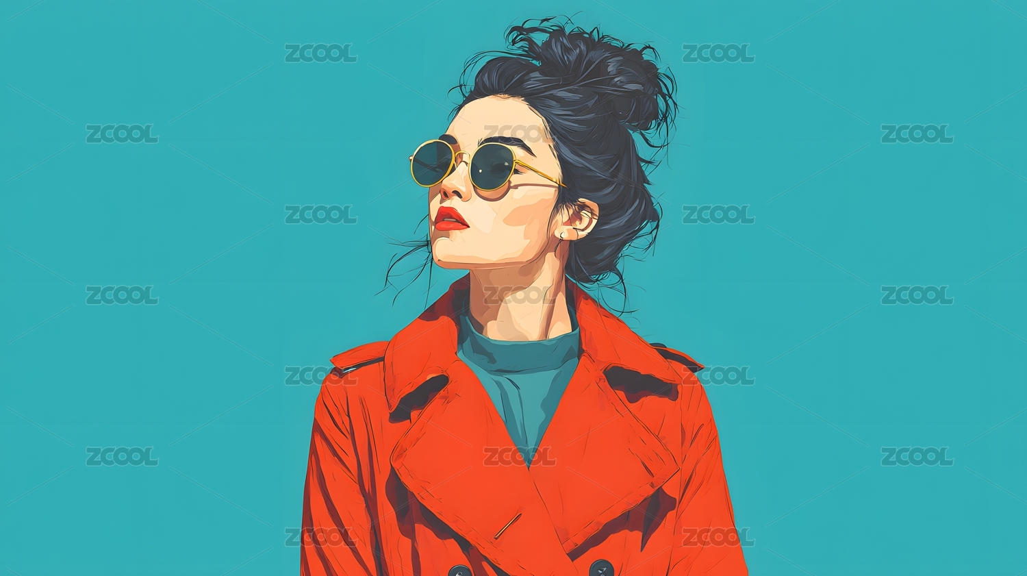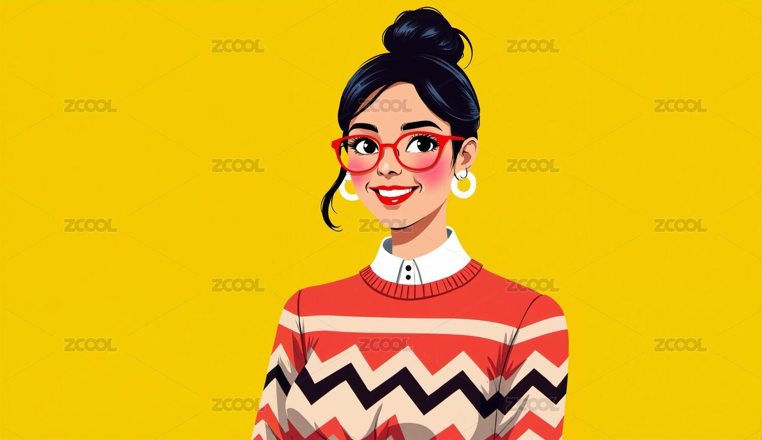 红墨镜女孩时尚插画
