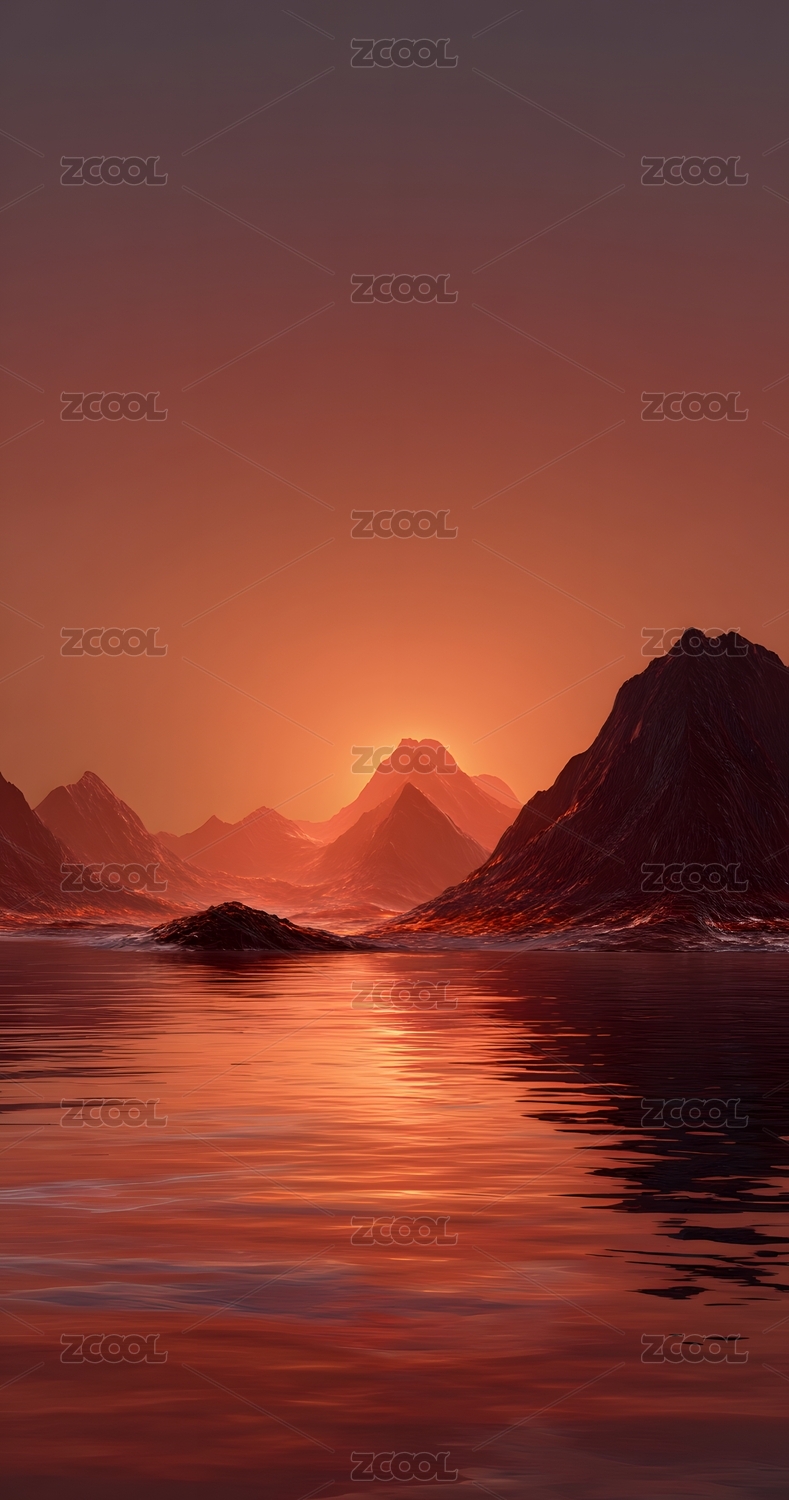湖泊,静谧,祥和,夕阳,光影,氛围,意境,绘画,写实,三维