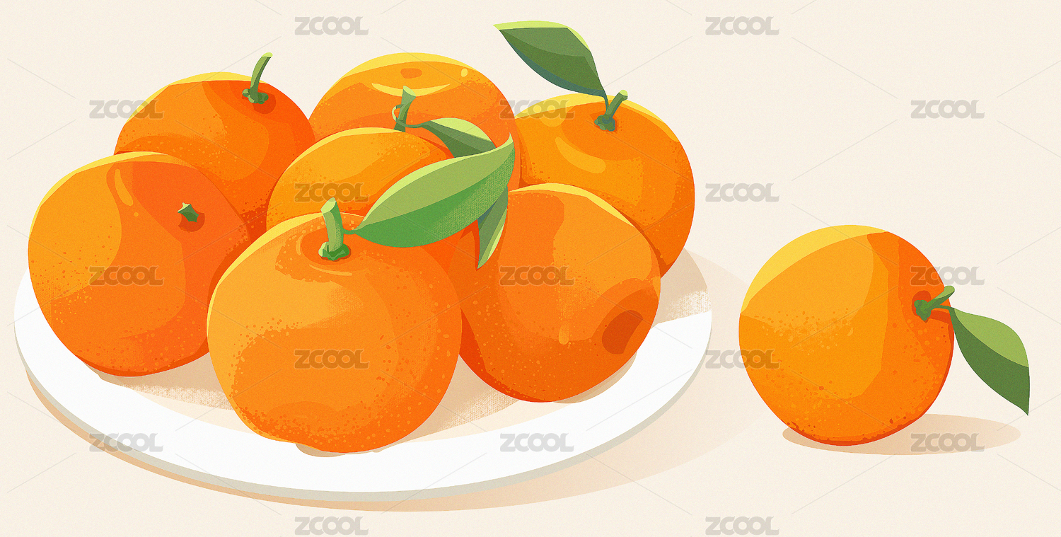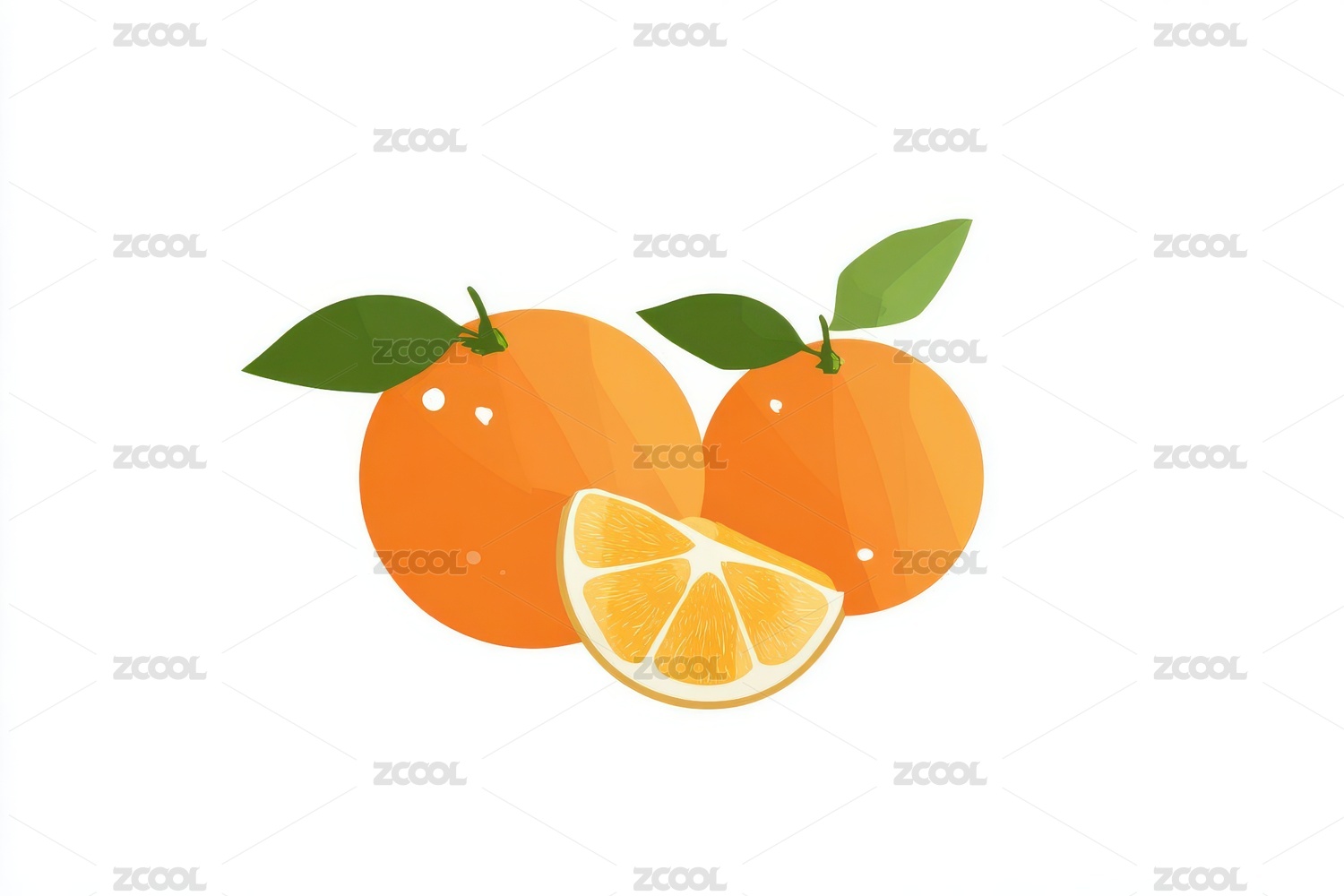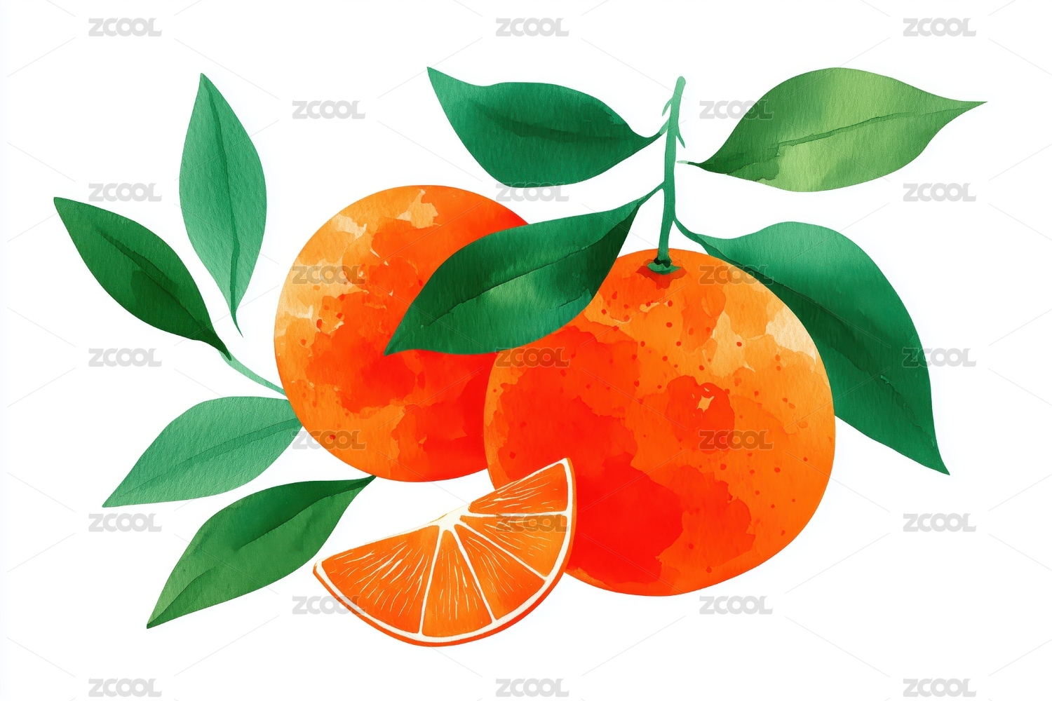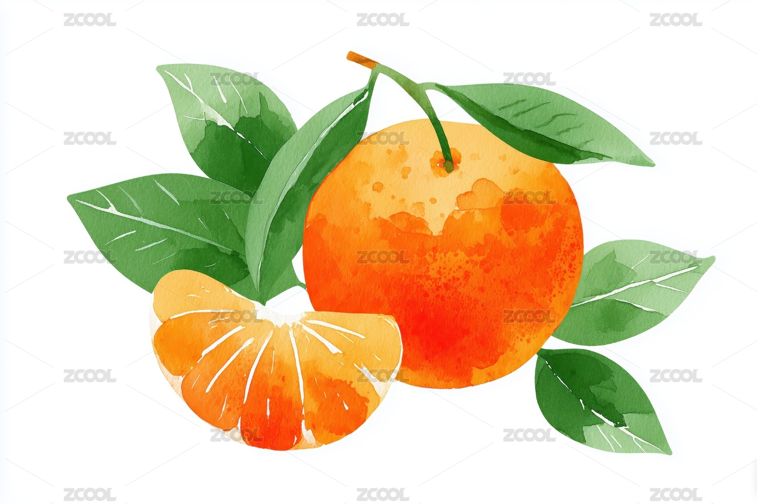 白背景带叶子的成熟的橘子手绘扁平水彩插画