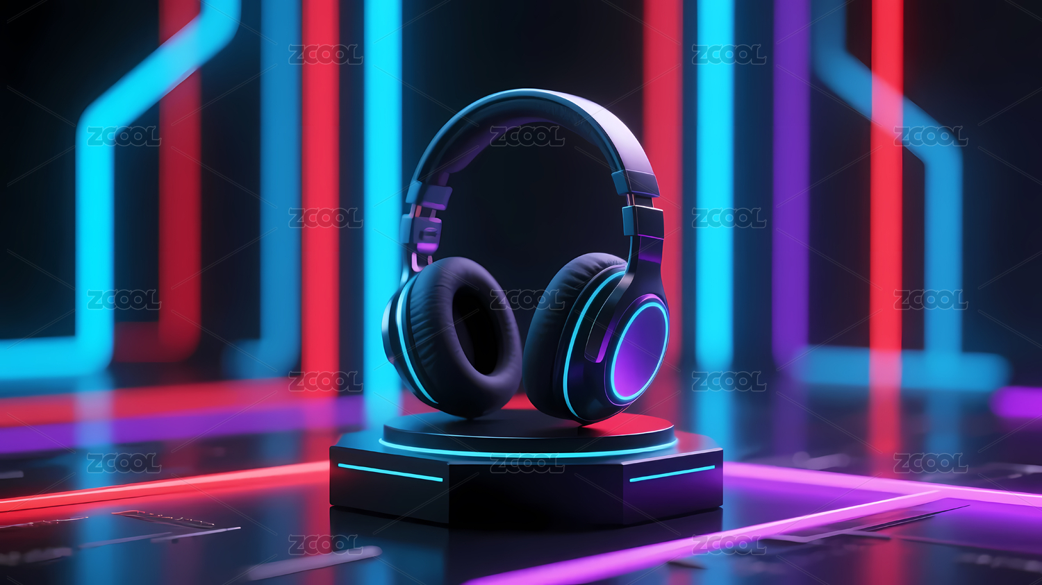 时尚潮流荧光色激光线条耳机耳麦霓虹科幻