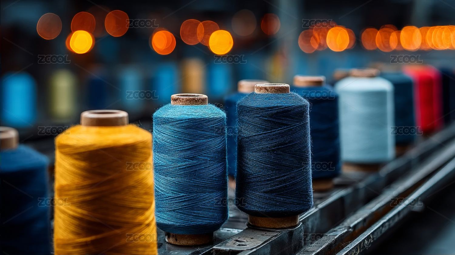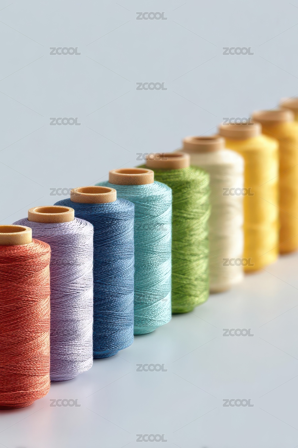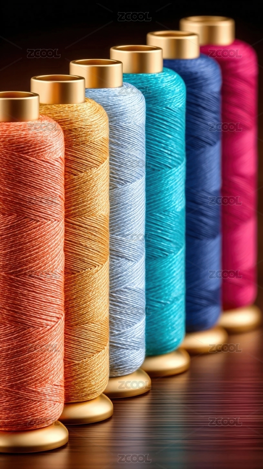 色彩斑斓的缝纫线卷在灯光下闪耀