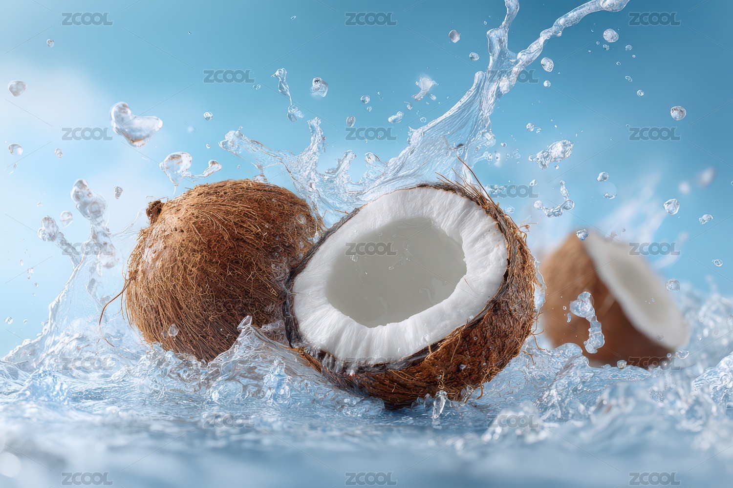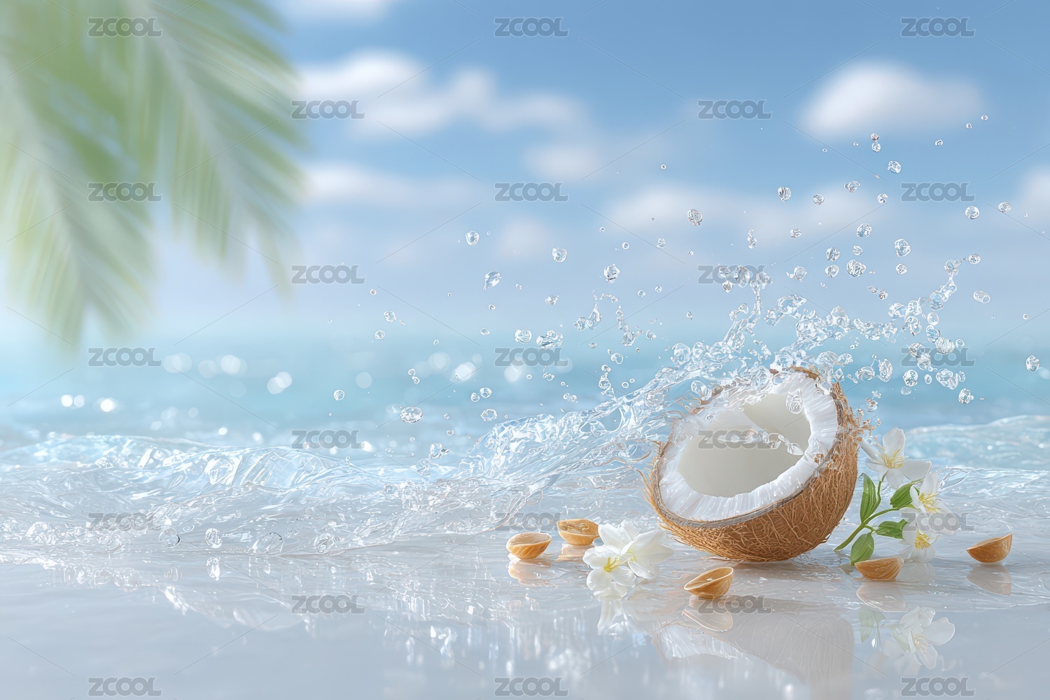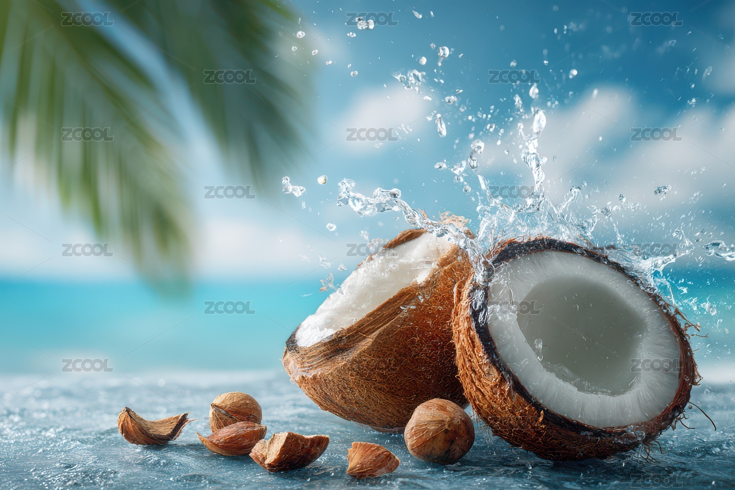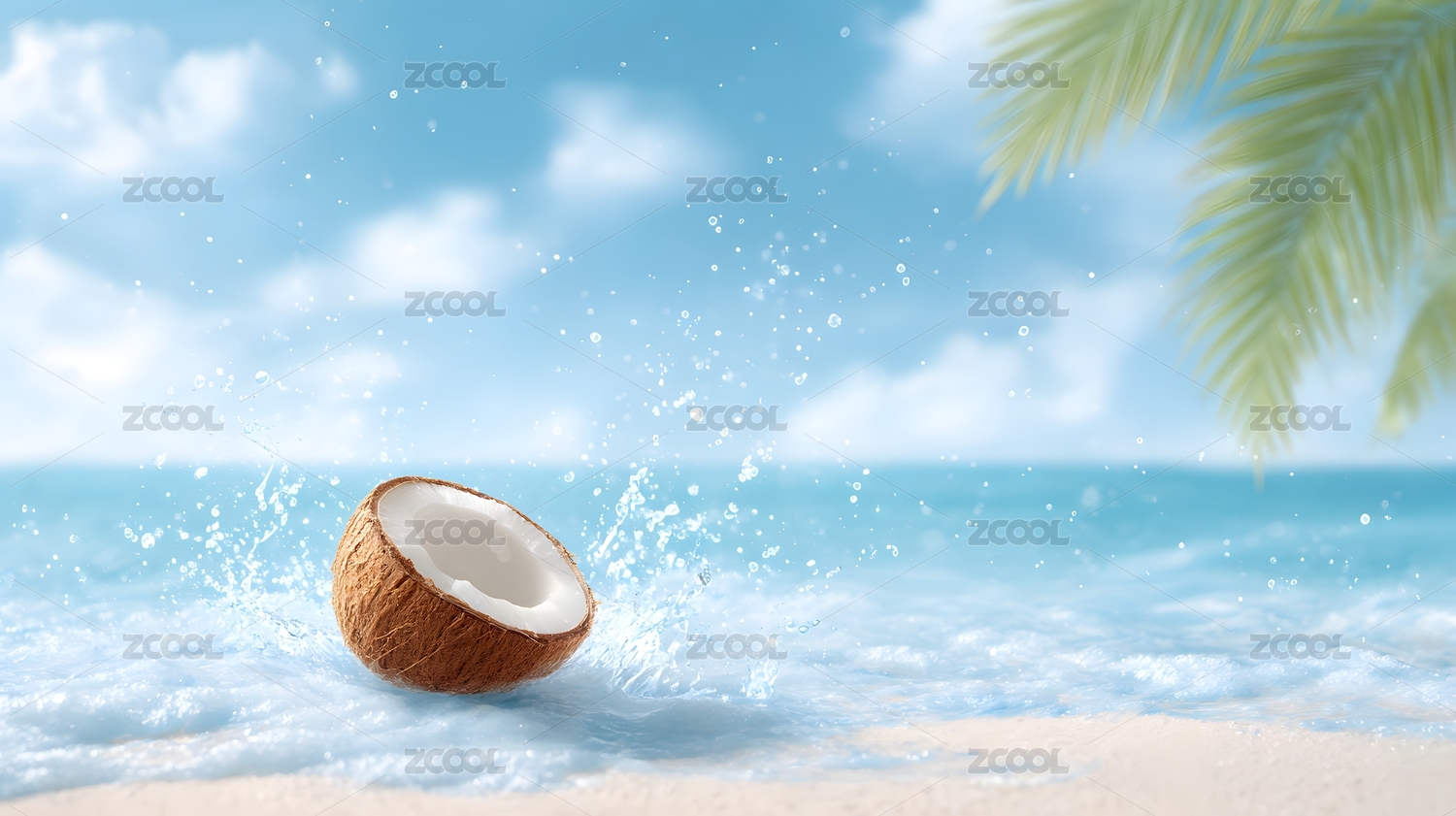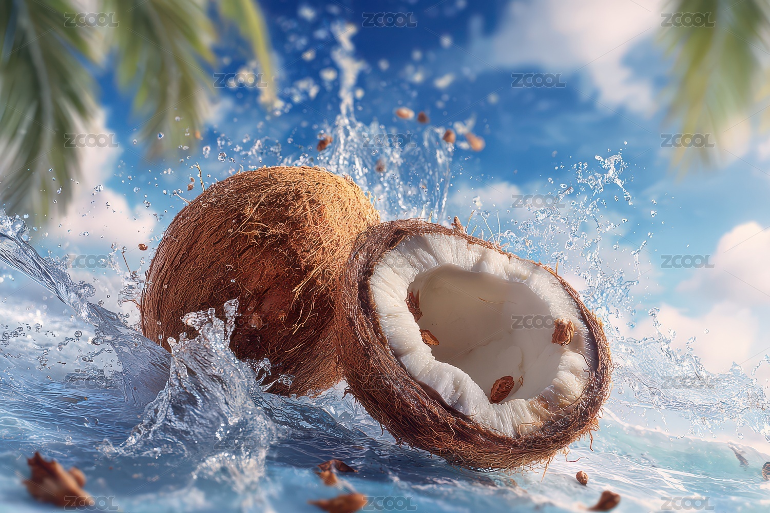 背景,绿叶,清新,椰子,水花,瞬间,蓝天,裂开,海面