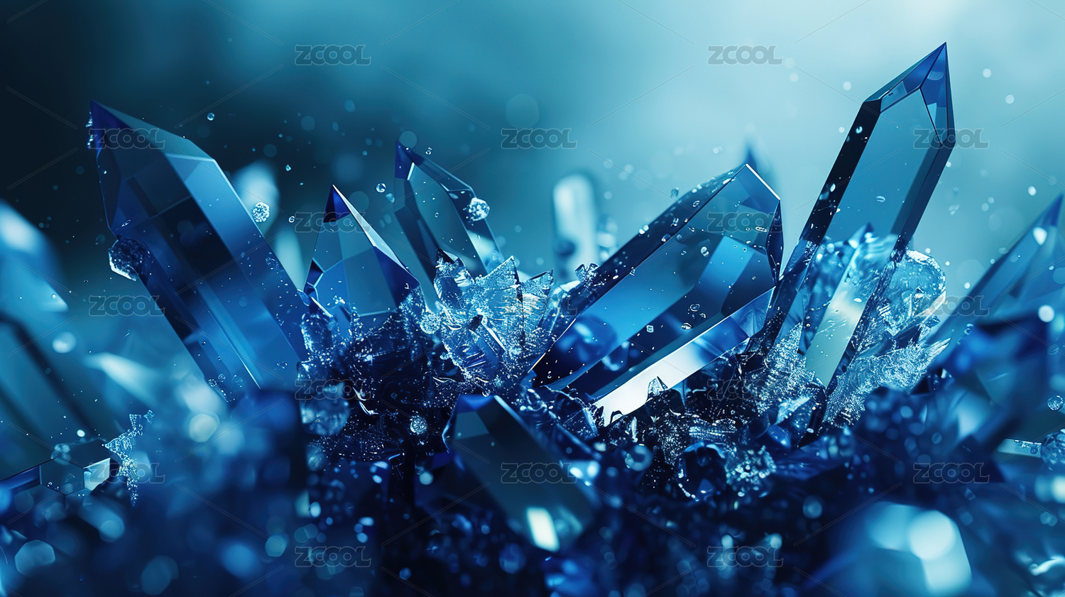 蓝色的水晶簇晶体闪耀光芒