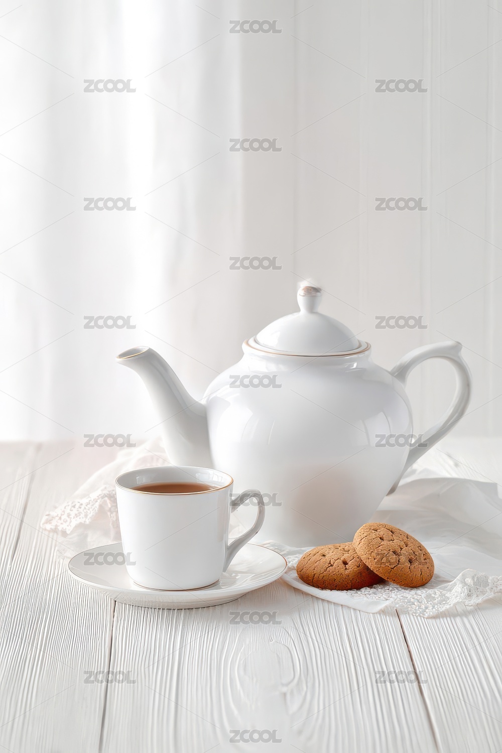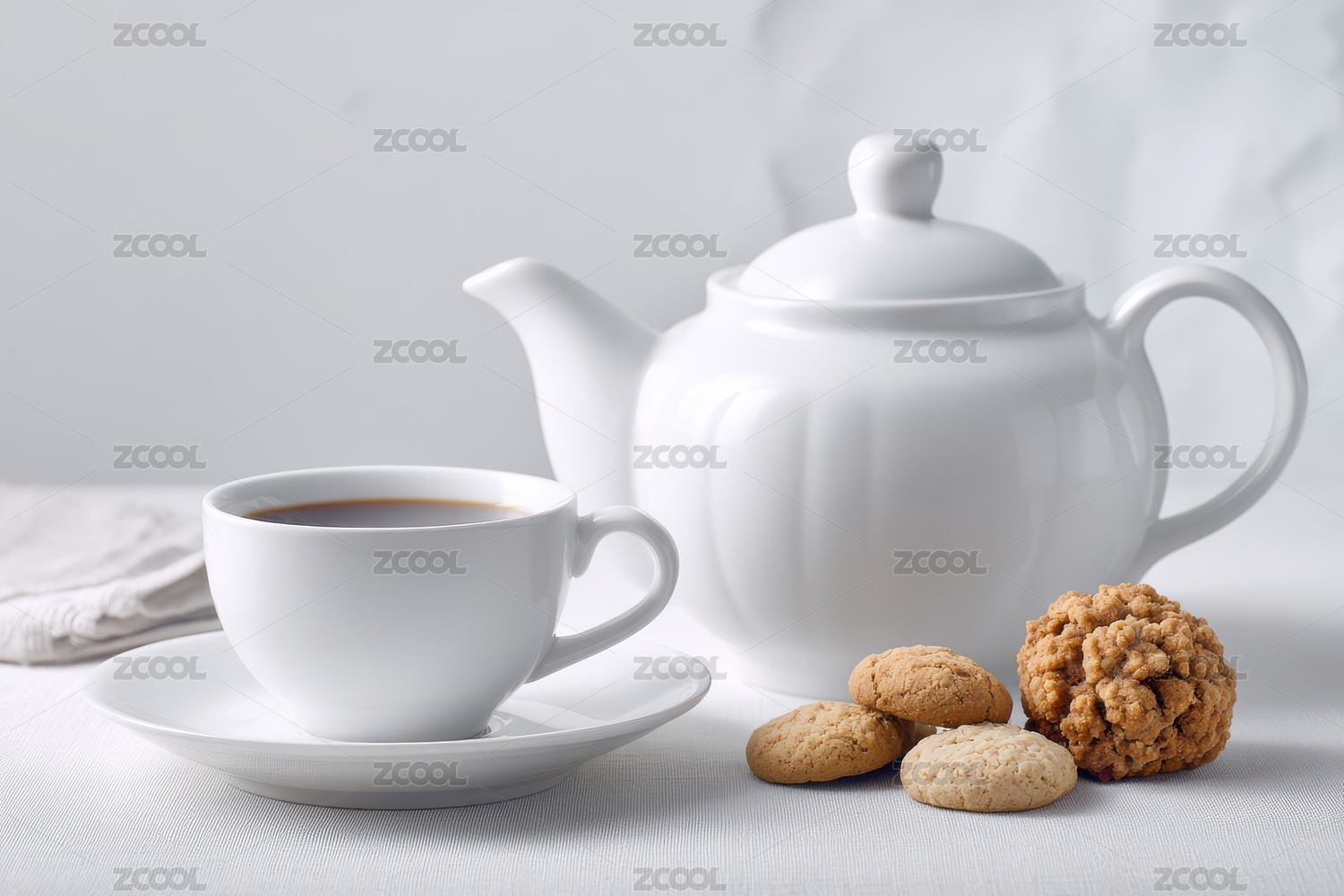光影,茶壶,茶杯,静谧,饼干,简约,温馨,布艺