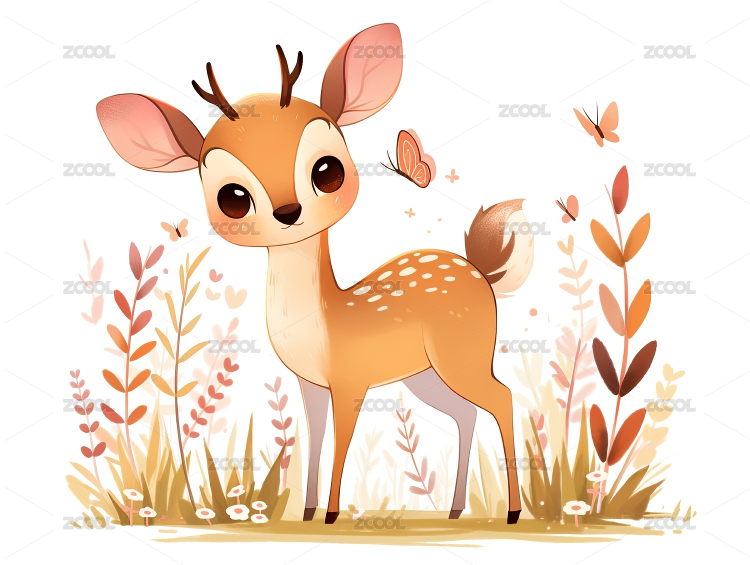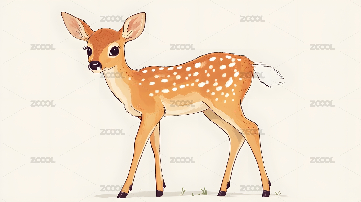 水彩卡通插画可爱的小梅花鹿