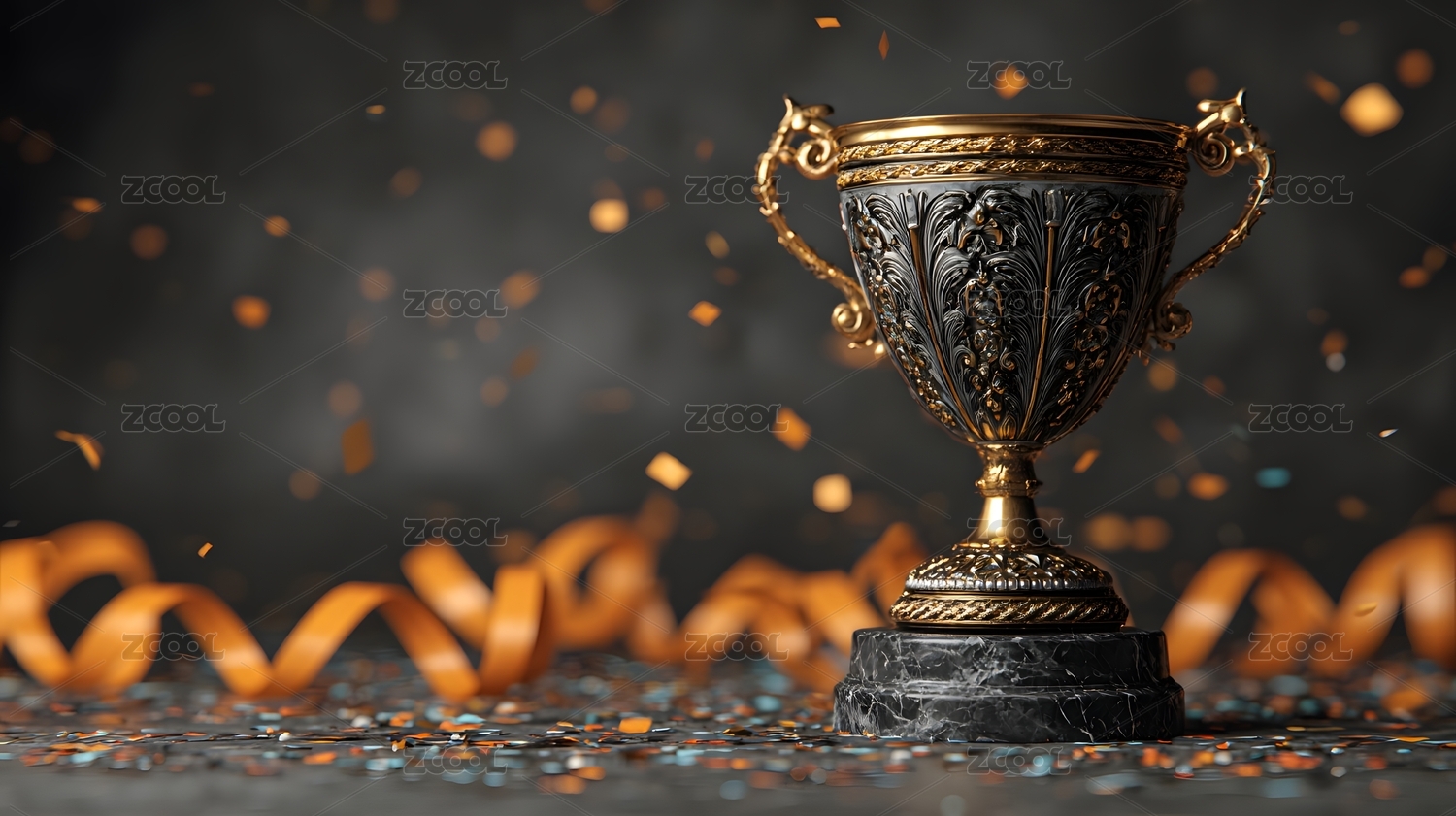 金色奖杯与彩带庆祝场景