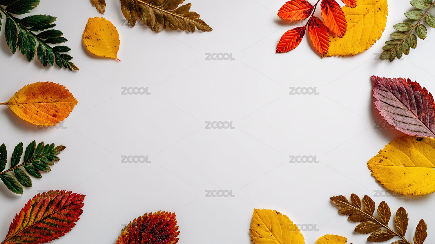 白色,背景,红色,黄色,橙色,相框,灰色,秋叶,散落,地面
