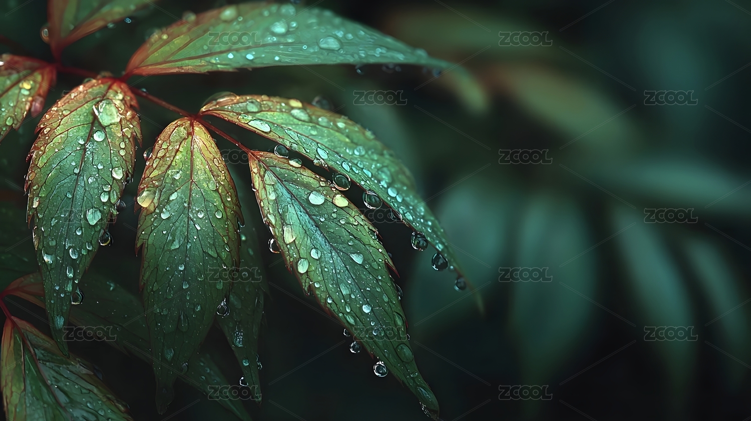 模糊,视觉,绿色,自然,清新,叶子,水珠,翠绿,晶莹,植物