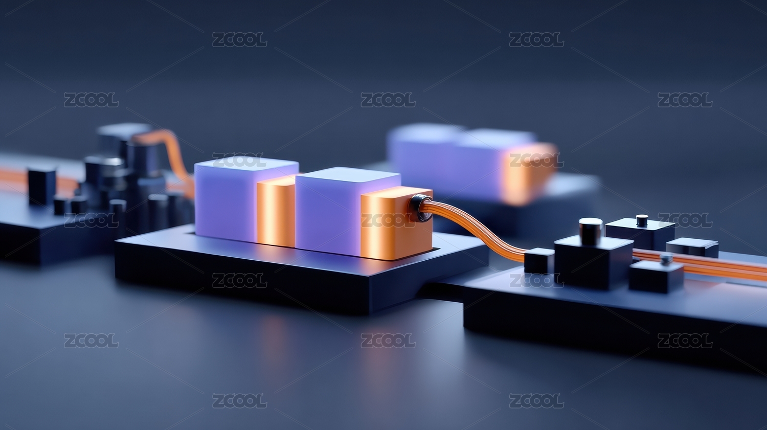 设备,模块,橙色,盖子,黑色,主体,管线,缠绕,蓝光,紫蓝