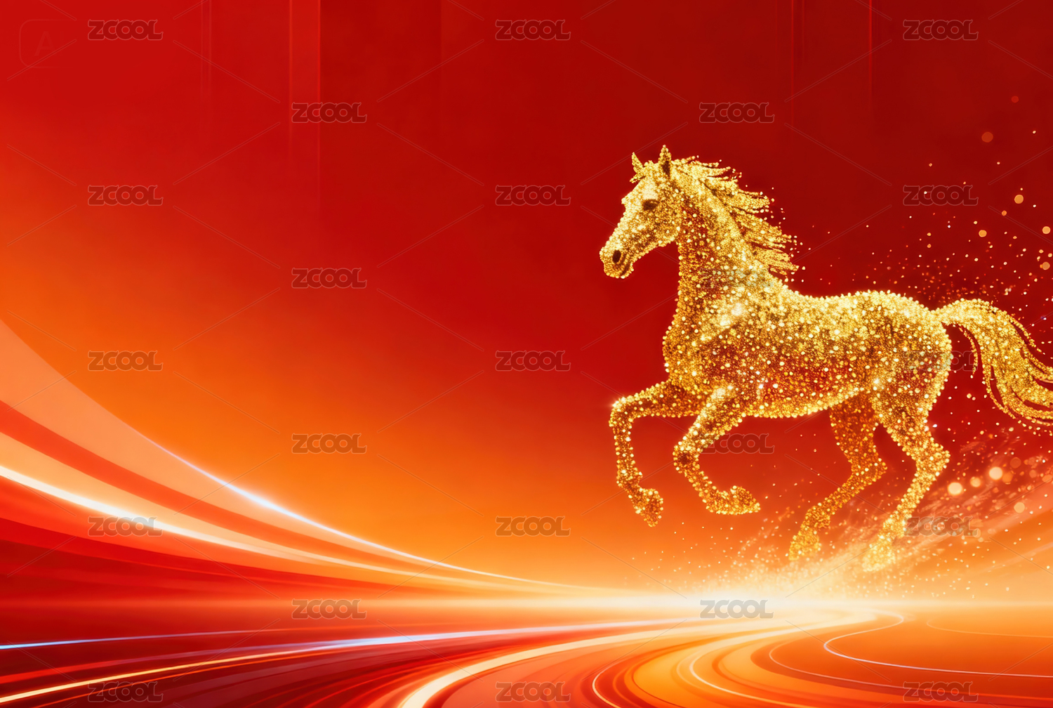 金驹,城市,光线,红色,圆台,发光,骏马,身姿,矫健,背景