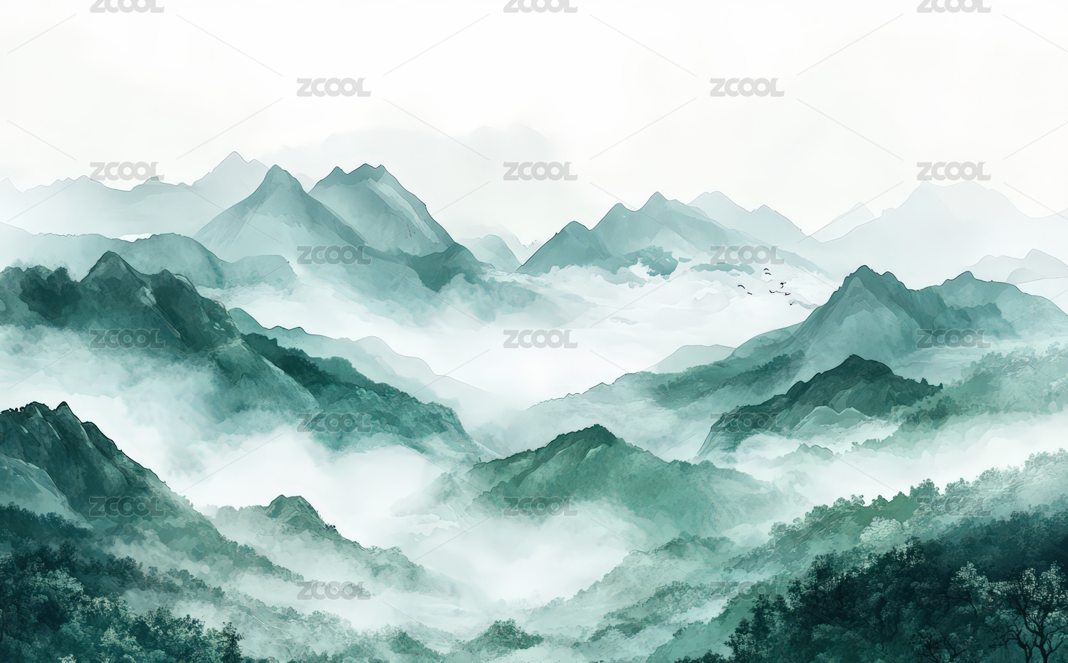 国风水墨云雾背景图