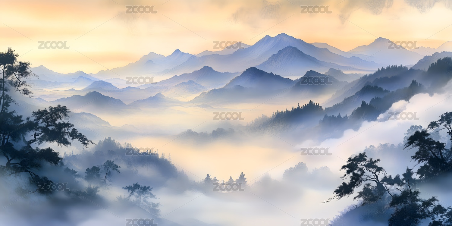 朦胧山脉风景画