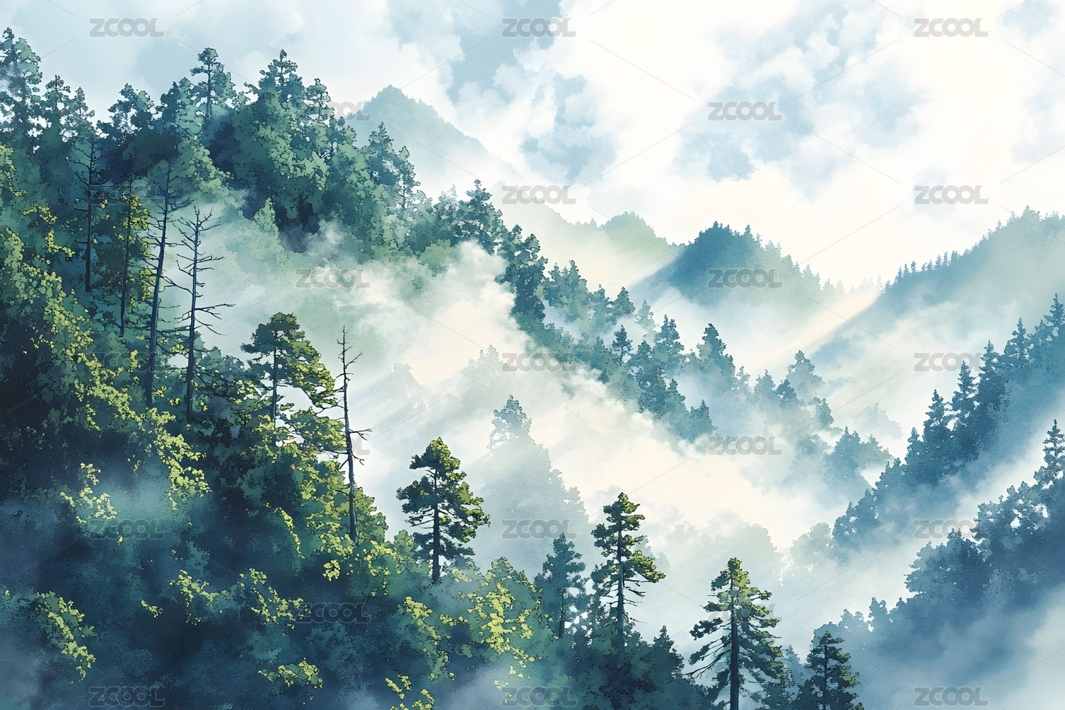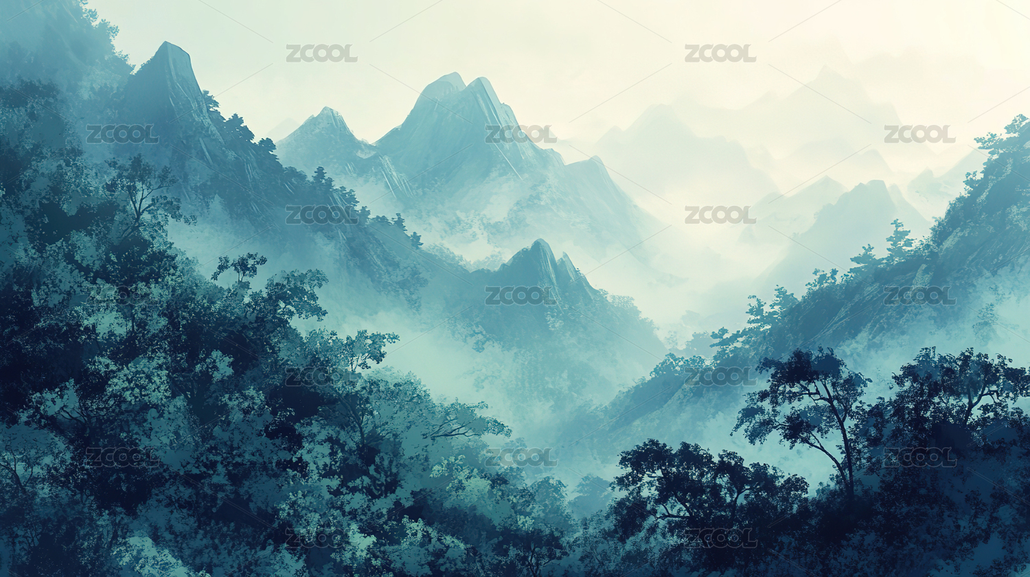 山间朦胧插画