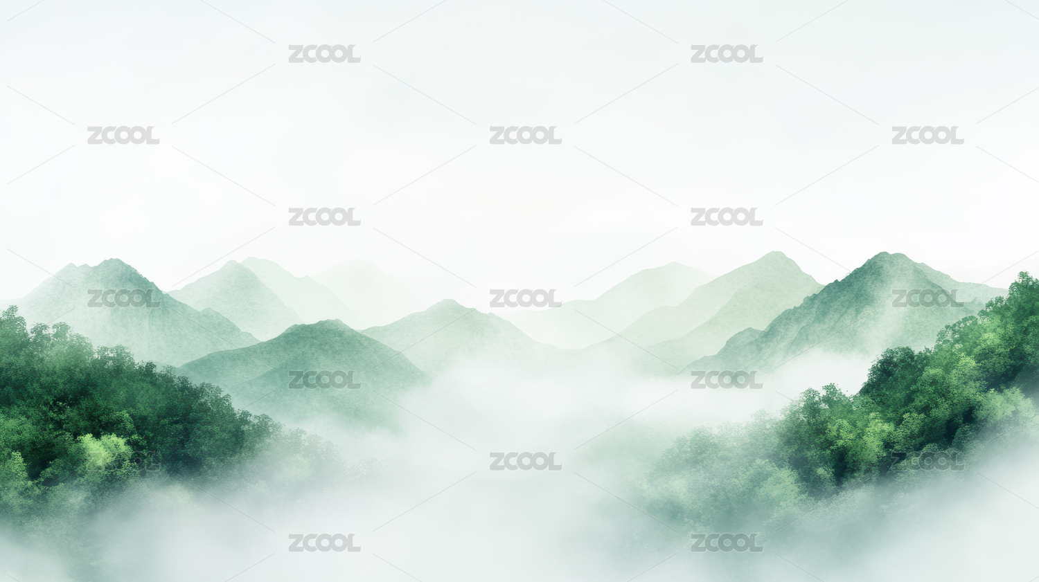 国潮古风国风抽象青绿山水背景图