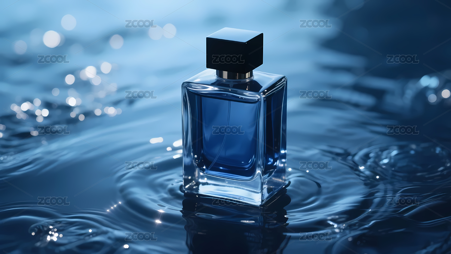 方形香水瓶置于流动背景中