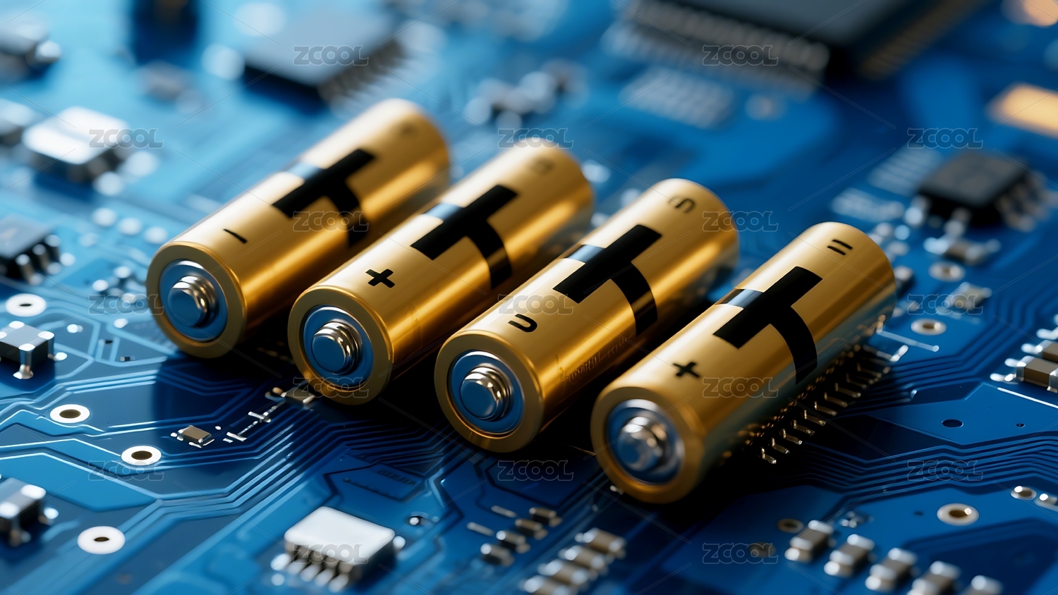 电路板上的蓝色电池展现科技感