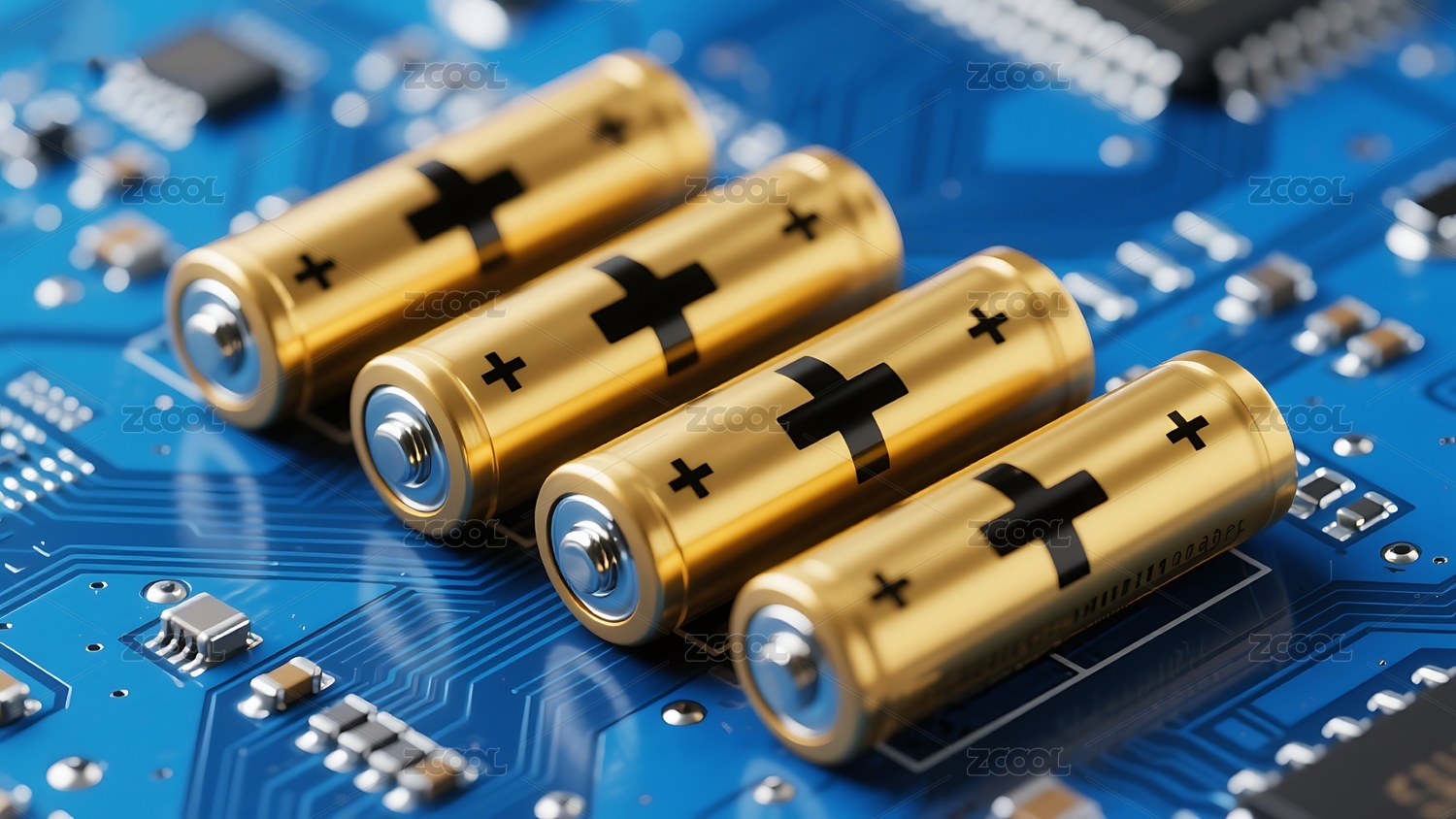 蓝色电池与电路板的科技组合