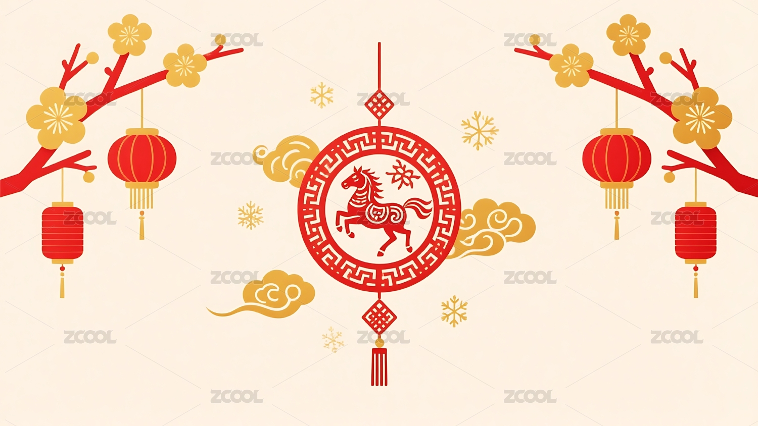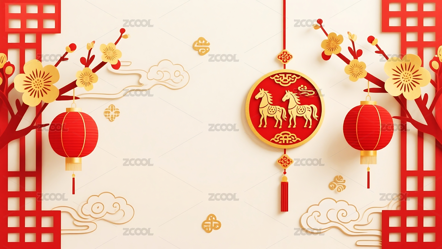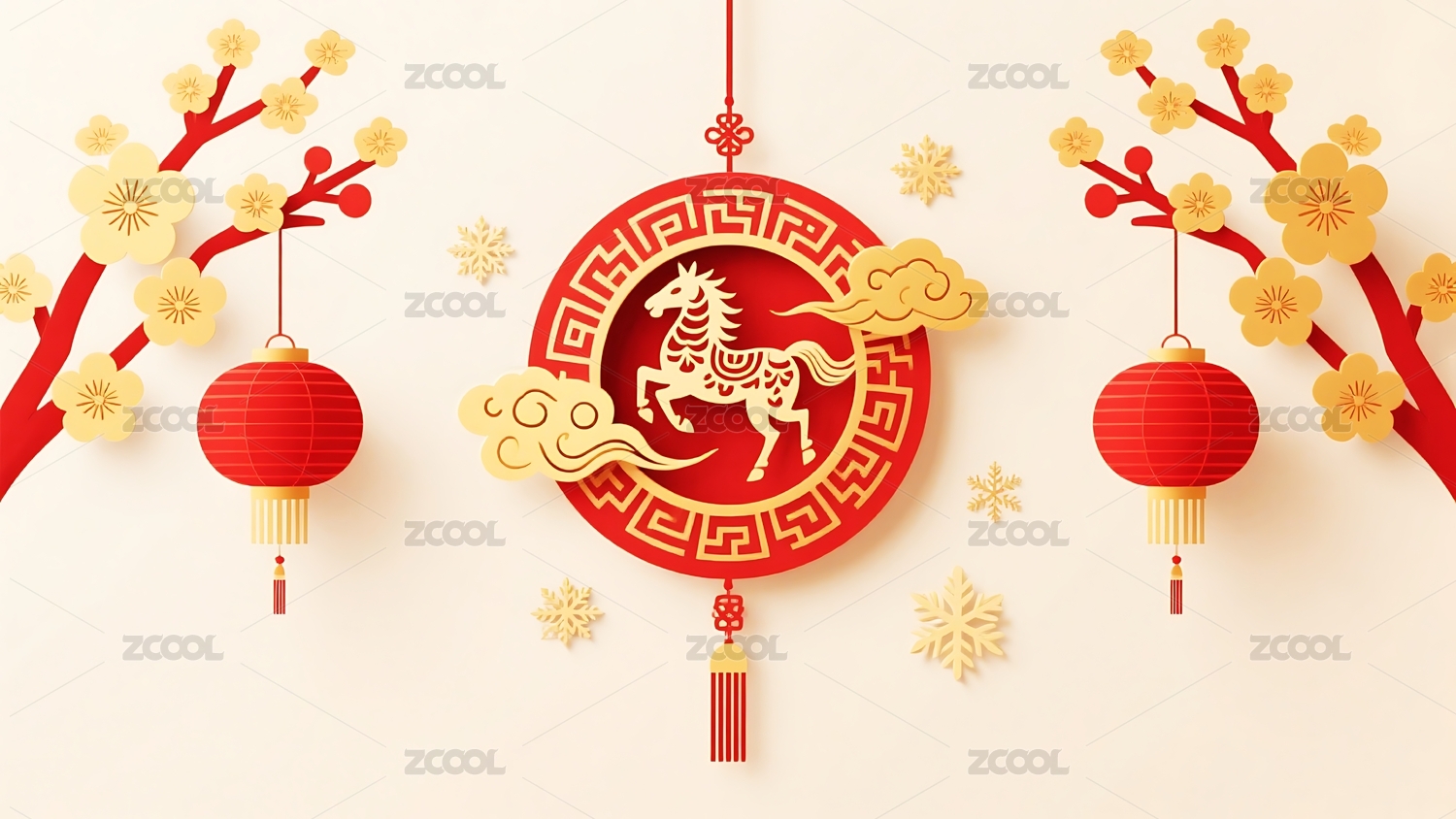 新春,马饰,剪纸,红枝,金花,灯笼,挂饰,金马,祥云,圆饰