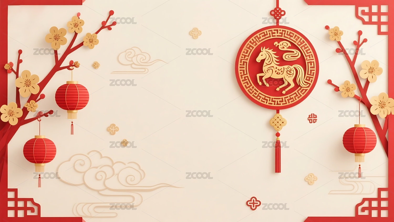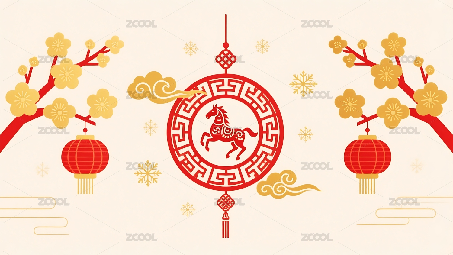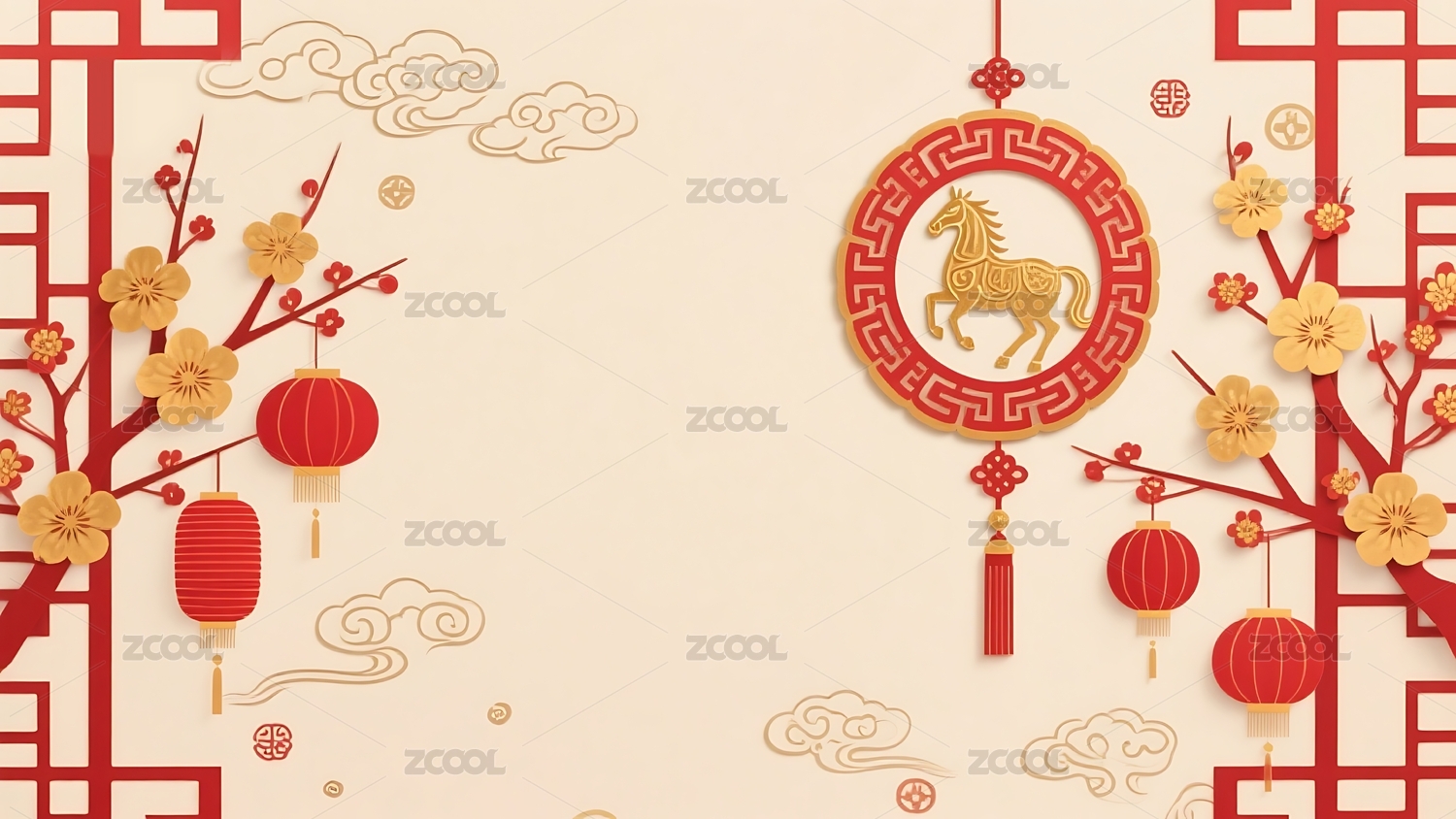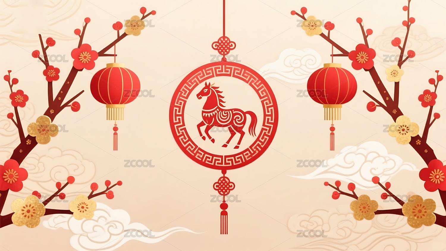 新春,马饰,剪纸,红枝,金花,灯笼,挂饰,金马,祥云,圆饰