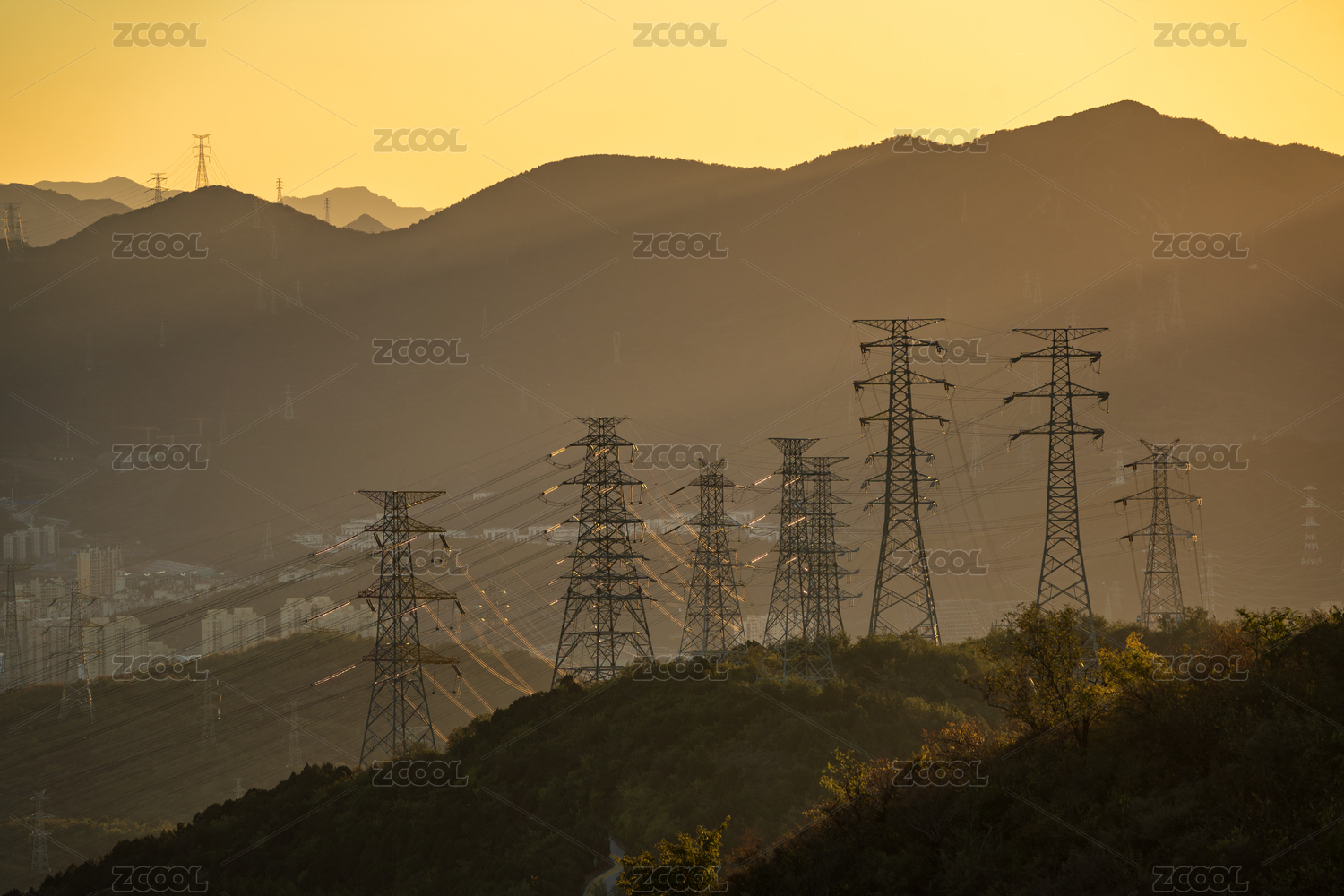 山谷上的输电塔
