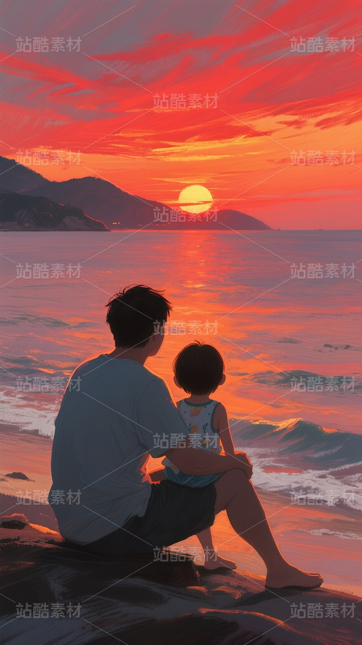 夕阳油画大海油画落日油画人物油画装饰画风景油画
