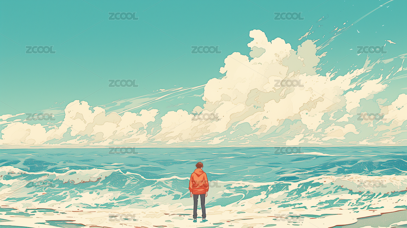 人物油画油画风景大海油画油画风景海浪油画夕阳油画