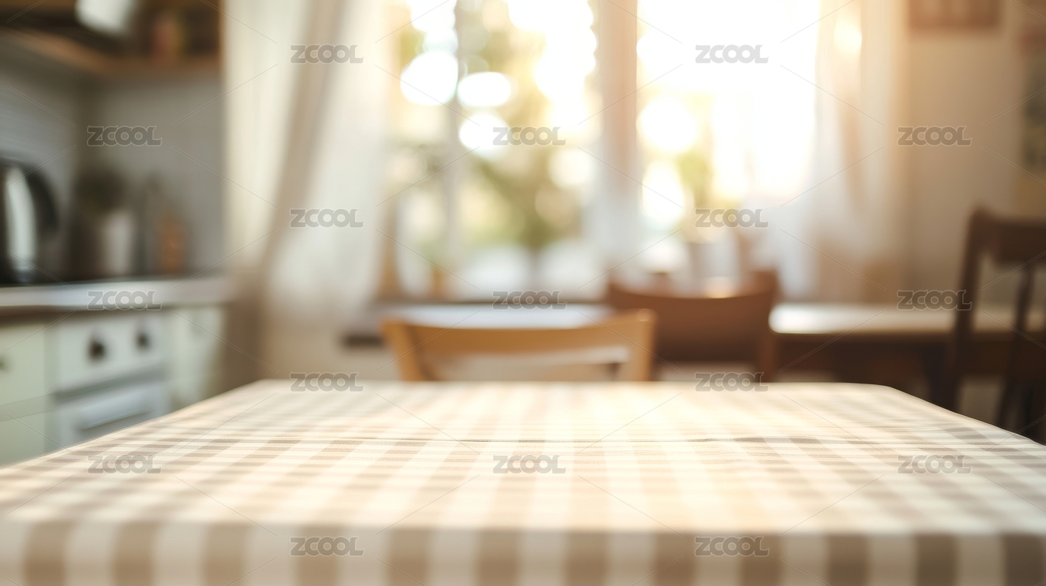 阳光洒在格子桌布上的温馨场景
