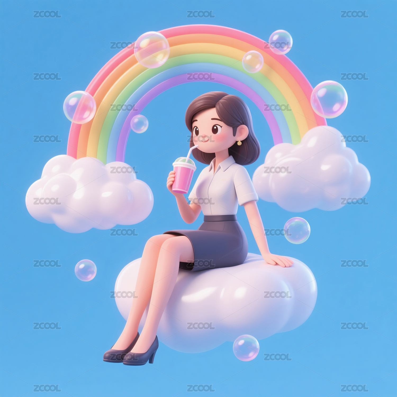 彩虹,云朵,白云,泡泡,可爱,萌萌哒,喝软饮,拿软饮,软饮,白领丽人