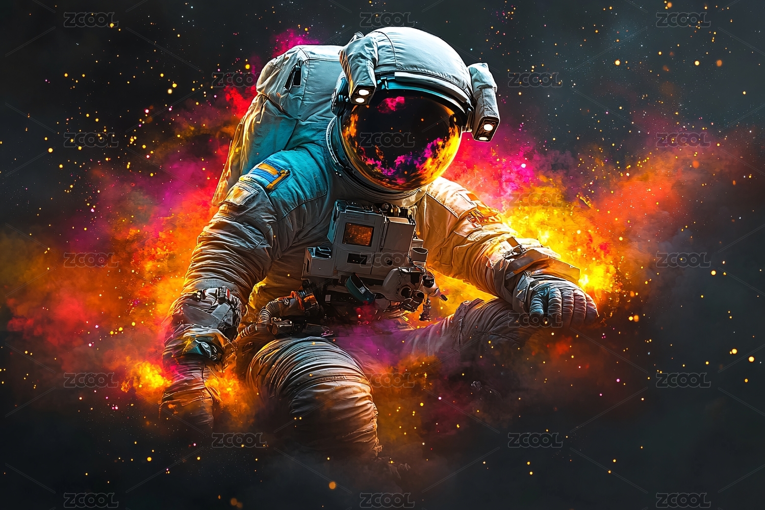 宇航员,火焰,太空,背景,插画,科幻,宇宙,元素,人物,画面
