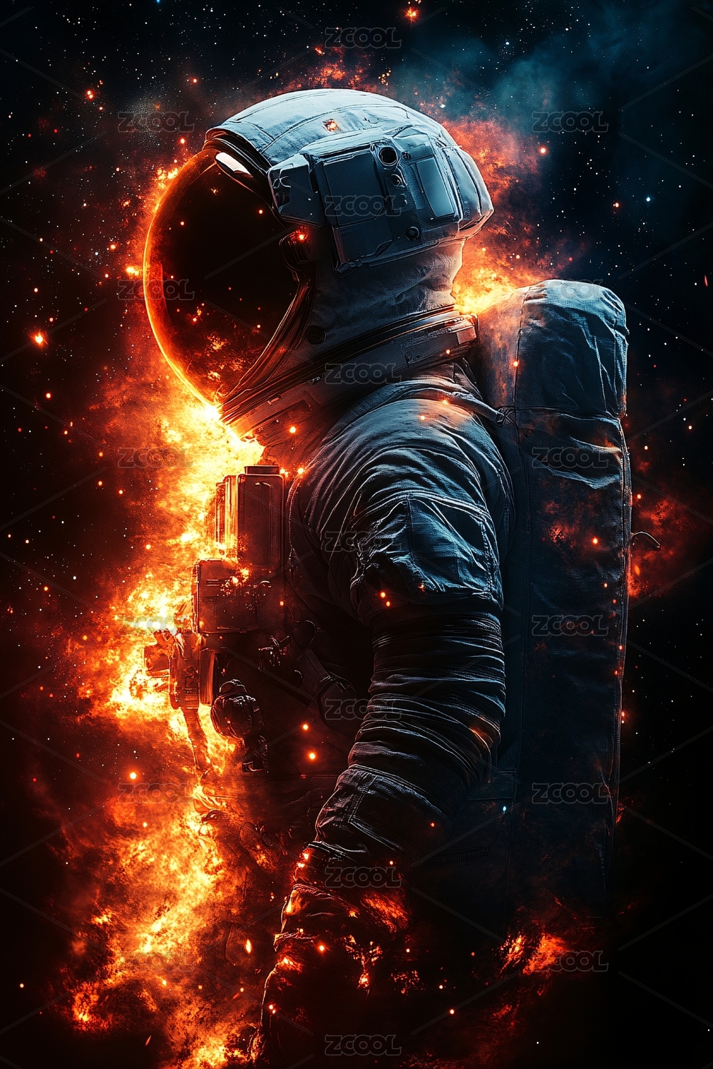 宇航员,火焰,太空,科幻,插画,画面元素,主题,太空漫步,宇航服,星空