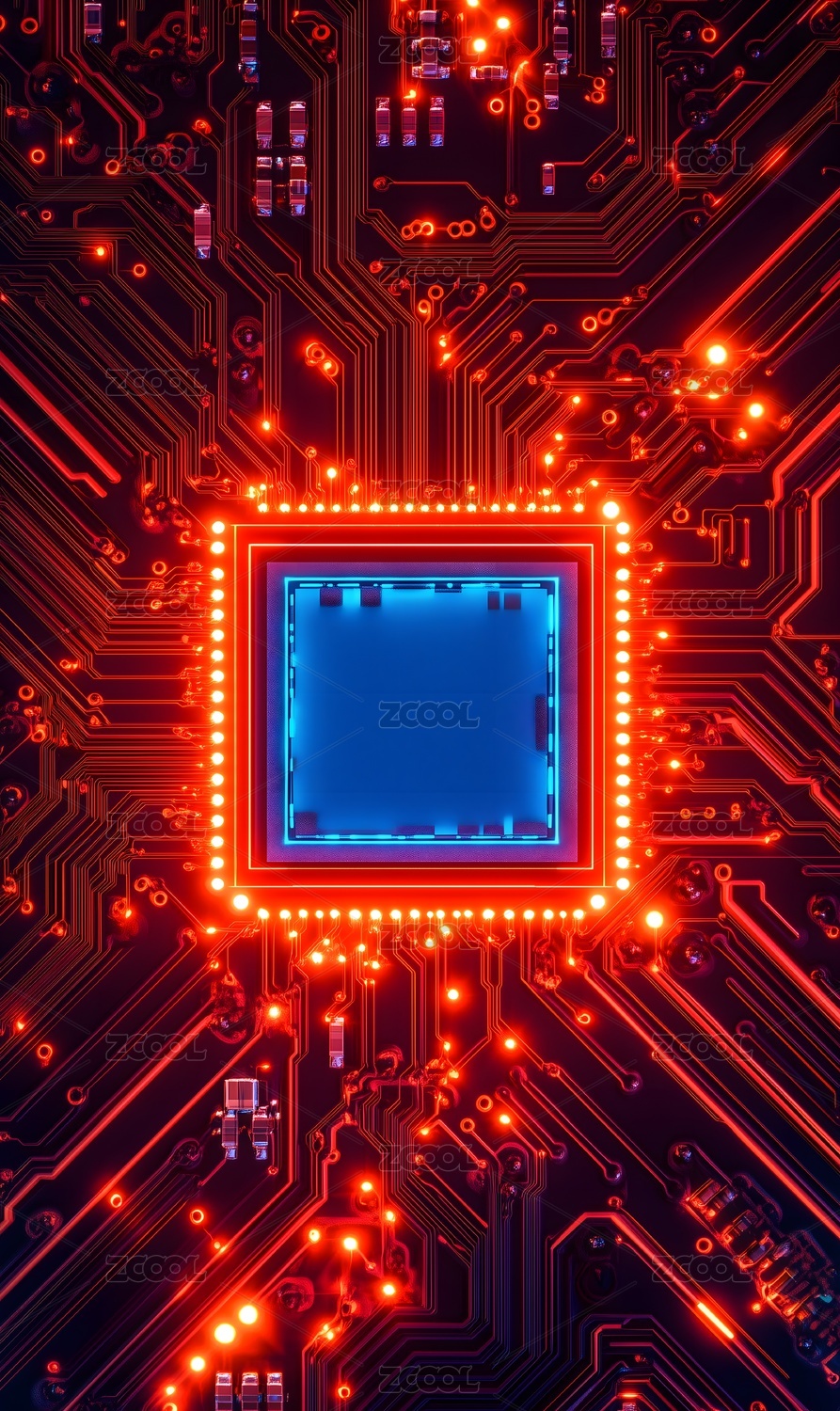 蓝色发光人工智能处理器芯片