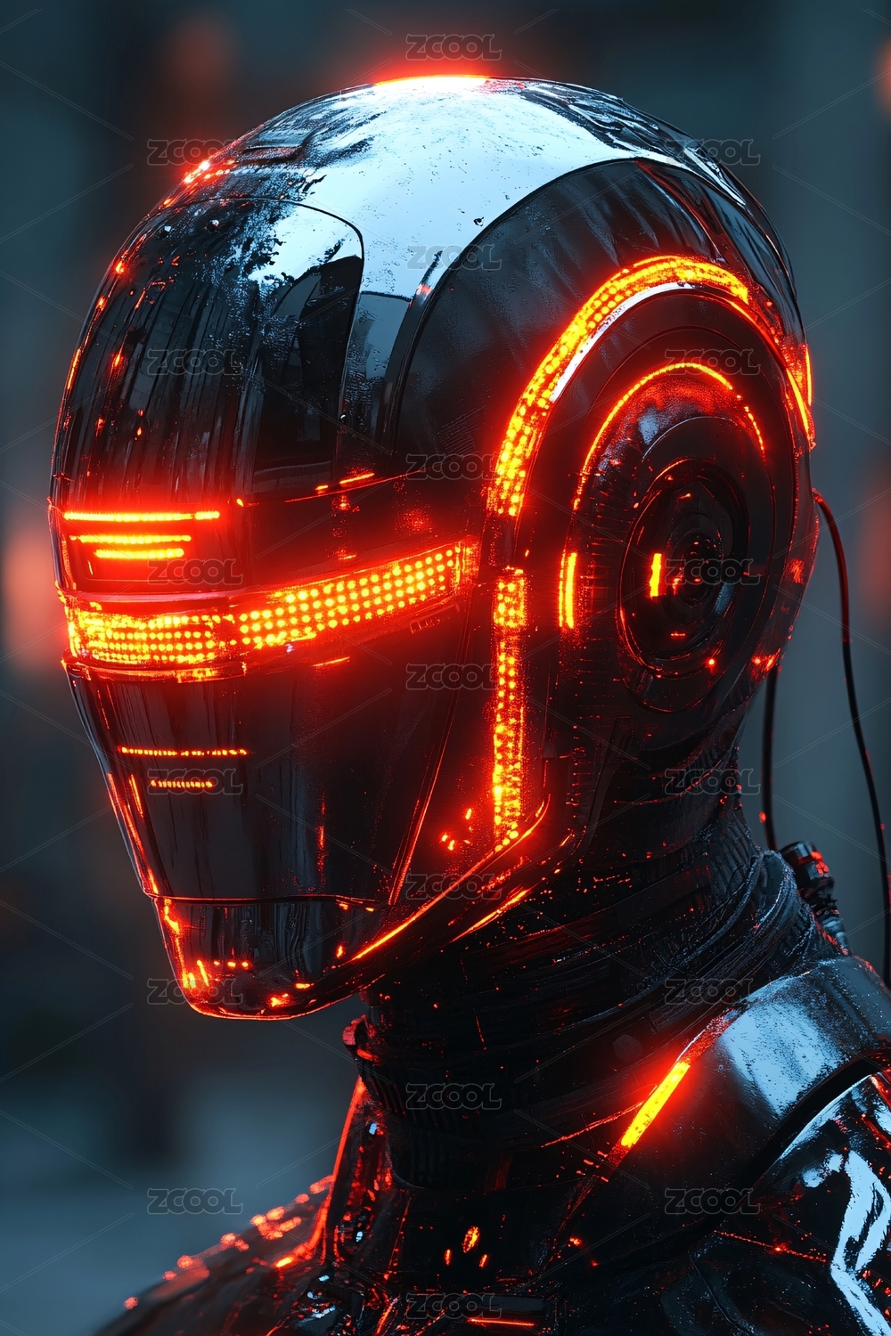 科幻风发光机器人头部特写
