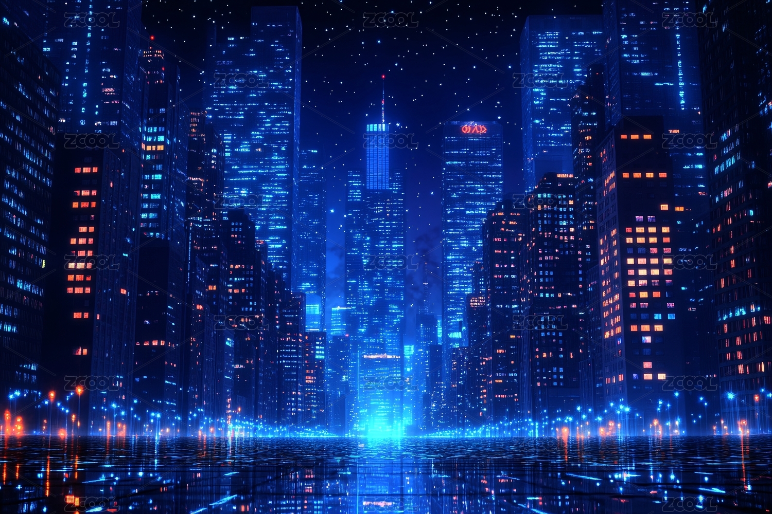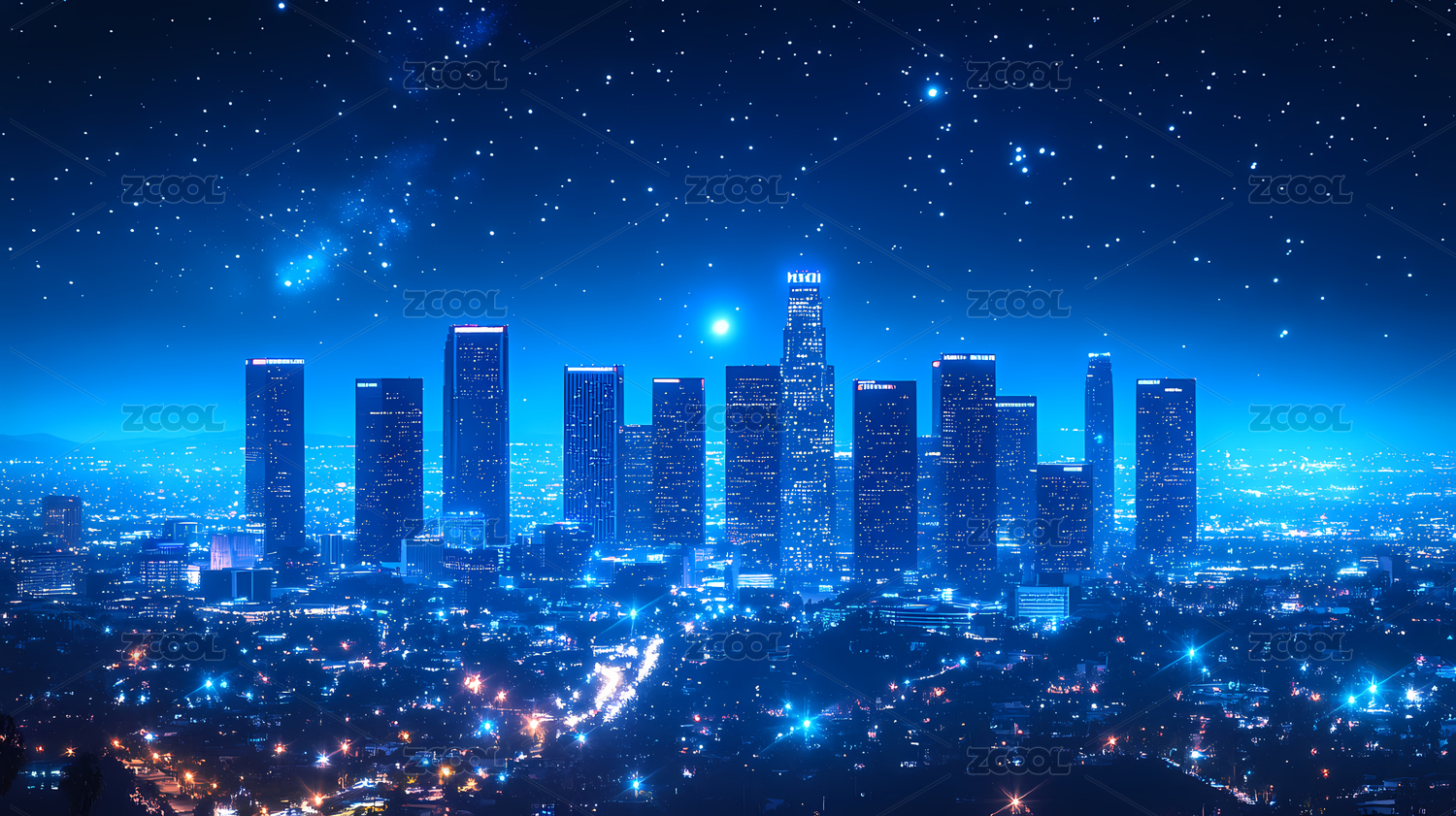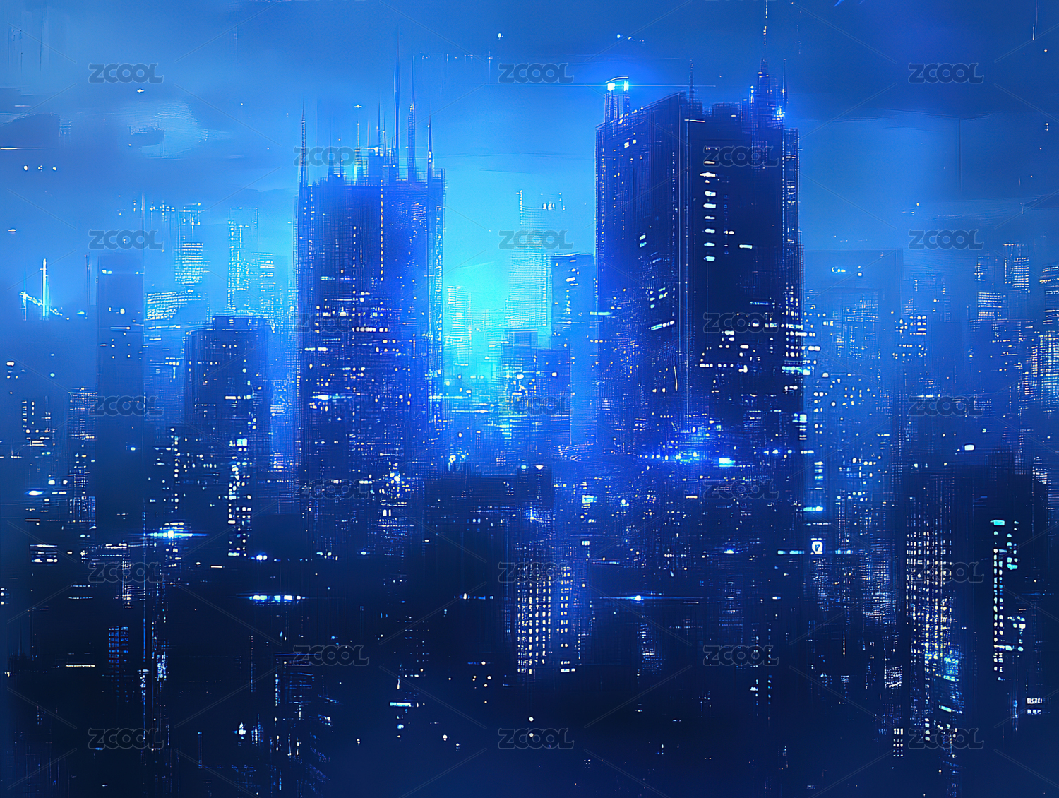 城市,夜景,蓝色,科技感,灯光,星空,插画,背景