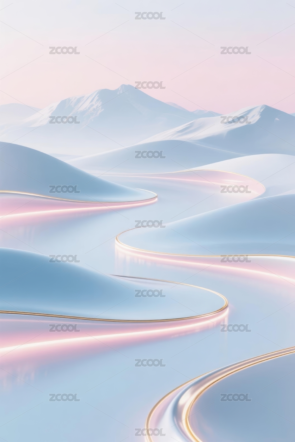 雪山与流线型景观的梦幻场景