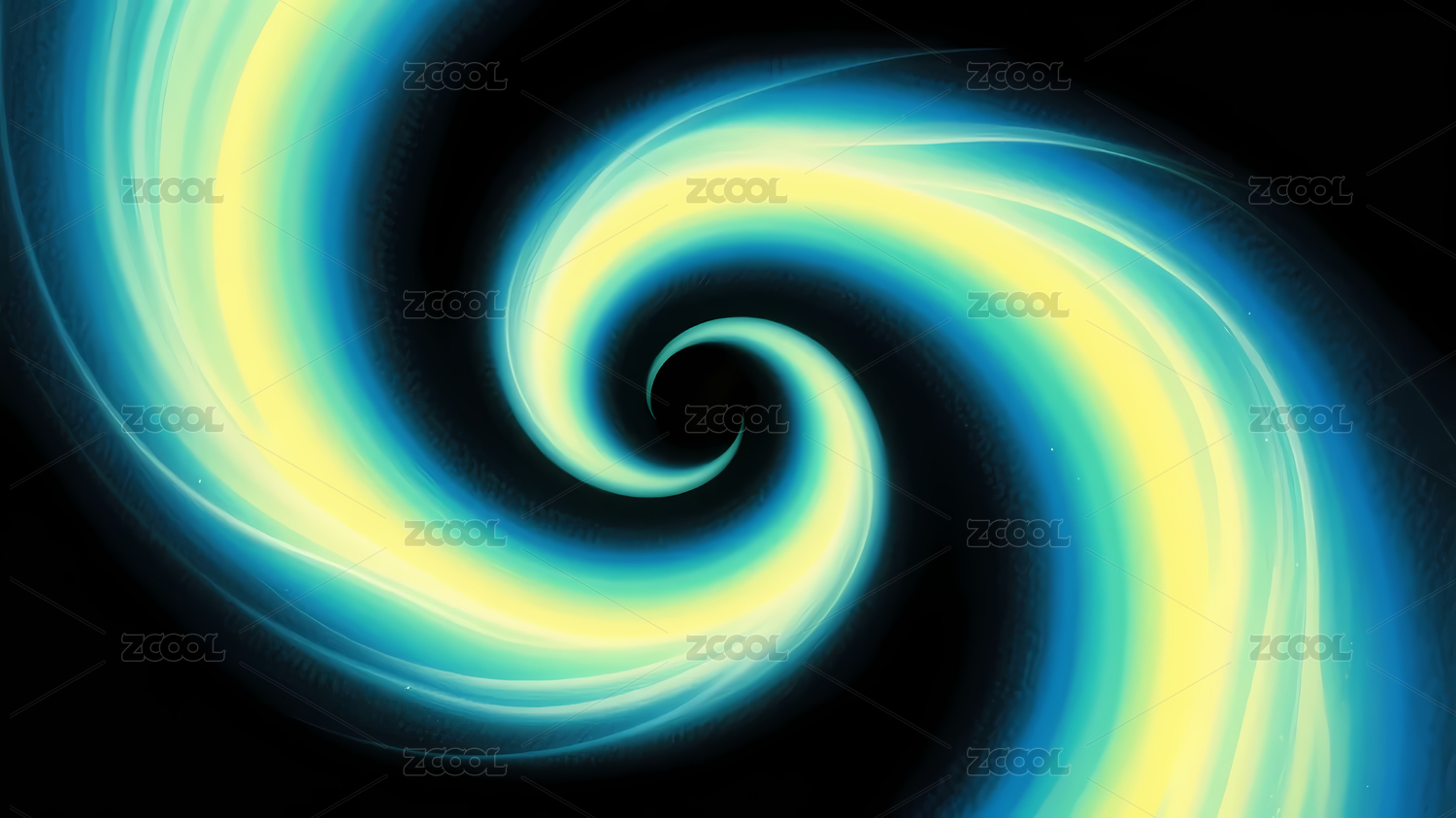 科技黑底荧光色弯曲的光束旋涡3D立体插画