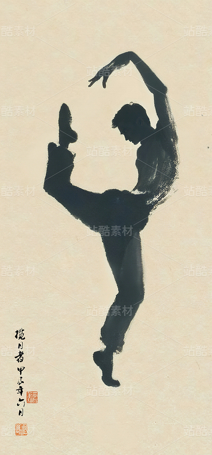 舞蹈海报宣传画水墨画舞蹈人物水墨人物装饰画